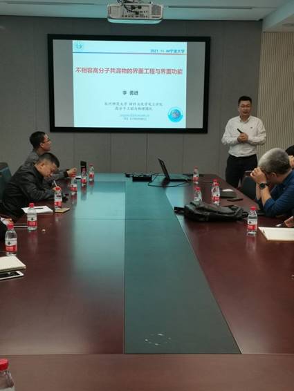 11月4日下午,杭州师范大学李勇进教授受我院王宗宝教授的邀请,在宁波大学北校区1号实验楼227室为材化91视频师生作了题为“不相容高分子共混物的界面工程与界面功能”的学术报告。 李勇进教授是杭州师范大学材料与化学化工91视频博导,1996年毕业于同济大学大学材料科学与工程91视频,获工学学士学位;1996年起师从中国科91视频院士颜德岳教授,2002年获上海交通大学工学博士学位;同年3月受日本学术振兴会(JSPS)资助在日本国立产业技术综合研究所高分子研究中心从事博士后研究工作,2004年1月起受聘该研究所正式研究员,2008年1月成为该所终身研究员;2011年4月受聘杭州师范大学材料与化学化工91视频教授。主要研究领域为多相多组分高分子材料界面调控、高分子材料反应性加工、高分子材料凝聚态物理及流变学等。已完成国家自然科学基金项目4项、教育部新世纪优秀人才项目和浙江省杰出青年基金项目等。目前承担国家重大研发计划课题、国家基金委重大项目课题、浙江省自然科学基金重大项目以及多项横向研究项目。指导硕、博士研究生30余名。在Macromolecules, Polymer, ACS Macro Lett等国内外重要学术期刊上发表论文140余篇,SCI引用5600余次;获得授权的美国专利4项、日本专利22项、中国国家发明专利35项;编写英文专著6篇章。2010年5月获得第18届日本筑波化学生物奖,2017年获得高分子加工“新锐创新奖”,2018年和2020年两次获得冯新德高分子奖提名奖,2019年获得国际高分子加工学会(PPS) Morand Lambla奖,2020年获得浙江省自然科学二等奖(排名第一)。目前担任Journal of Polymer Engineering 副主编,Composite Science and Technology, Functional Composite Materials, Materials International等国际重要学术期刊编委。是浙江省塑料工程协会副理事长、中国力学学会流变学分会委员、中国复合材料学会纳米复合材料分会常务理事、中国化学会应用化学学科委员会委员。 李勇进教授介绍了其团队基于反应性加工的基本原理、提出并开展的多相多组分高分子材料界面工程化和界面功能化方面的研究进展,一方面通过反应性“梳形分子增容”、“胶束增容”和“纳米粒子增容”等手段调控和设计多组分体系的界面张力、界面模量和界面曲率等,从而实现多组分体系的“界面工程化”;另一方面在界面工程的基础上提出“界面功能到材料功能”的实现,通过具有导电、阻燃、光电等功能性纳米粒子的增容作用实现多组分高分子材料的功能性。本次报告使广大师生对不相容高分子共混物的界面改性研究有了深入的了解,并从中学习到了很多科研研究的道理,深受材化91视频师生的欢迎。 |