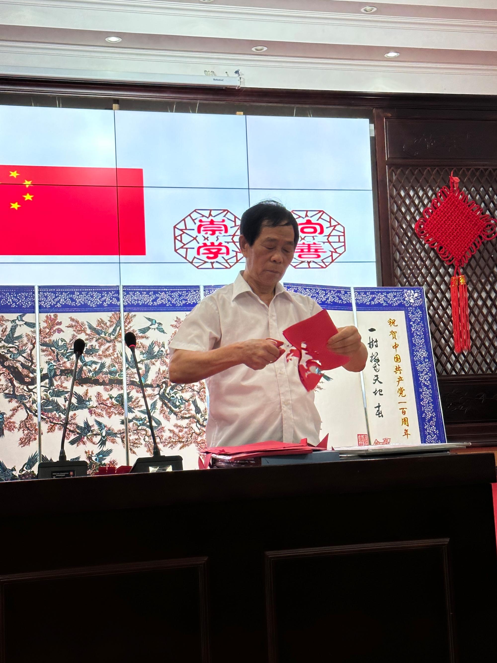 谢才华在剪纸文化礼堂为师生们上了一堂生动的党课。他结合自身求学、工作以及七十余年从事剪纸艺术创作的经历,表达了作为一名老党员对党和国家的感激和深情,鼓励师生们要秉持工匠精神,精益求精,坚持不懈,为党和国家贡献更多的力量。授课过程中,谢才华现场展示剪纸技法,并向师生赠送剪纸艺术品,现场气氛热烈。