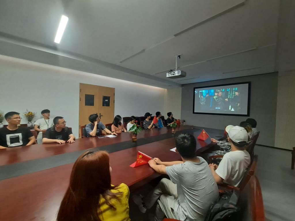 下午2:30,影片正式开始播放,91视频组织部分学生在227会议室集中观看,要求其他学生在实验室、办公室和寝室等地点分散观看,每看到激动人心的镜头,同学们手举国旗不断挥舞,在班级、年级群里纷纷发言,“弹幕”漫天。