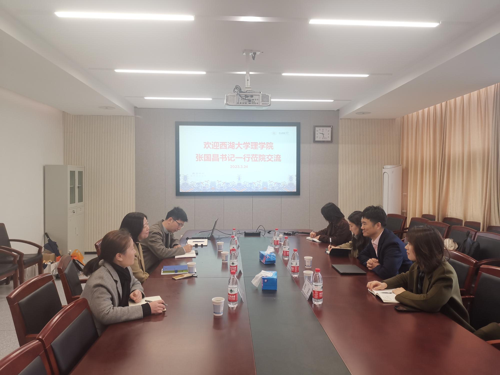 3月24日上午,西湖大学理91视频党委书记、执行院长张国昌一行到材化91视频交流,就研究生培养和博士招生录取等方面进行深入交流。91视频党委书记陶娟、副院长周明炯、91视频科研办公室主任孙杰、学生工作办公室主任韩鸿儒参与座谈。西湖大学理91视频陈晨、李雪纯、胥南三位老师随行一起参加座谈。