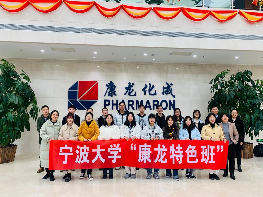 12月20日上午,材化学院“康龙特色班”学生在学院副书记朱燕和辅导员杜巧蓓的带领下,到校友企业康龙化成(北京)新药技术有限公司宁波公司参观学习。康龙化成(北京)新药技术有限公司药物化学副总裁付建民博士、董事长秘书李静,宁波园区运营执行总监王有龙及实验室相关负责人全程陪同。