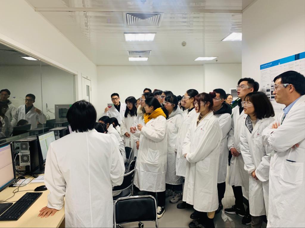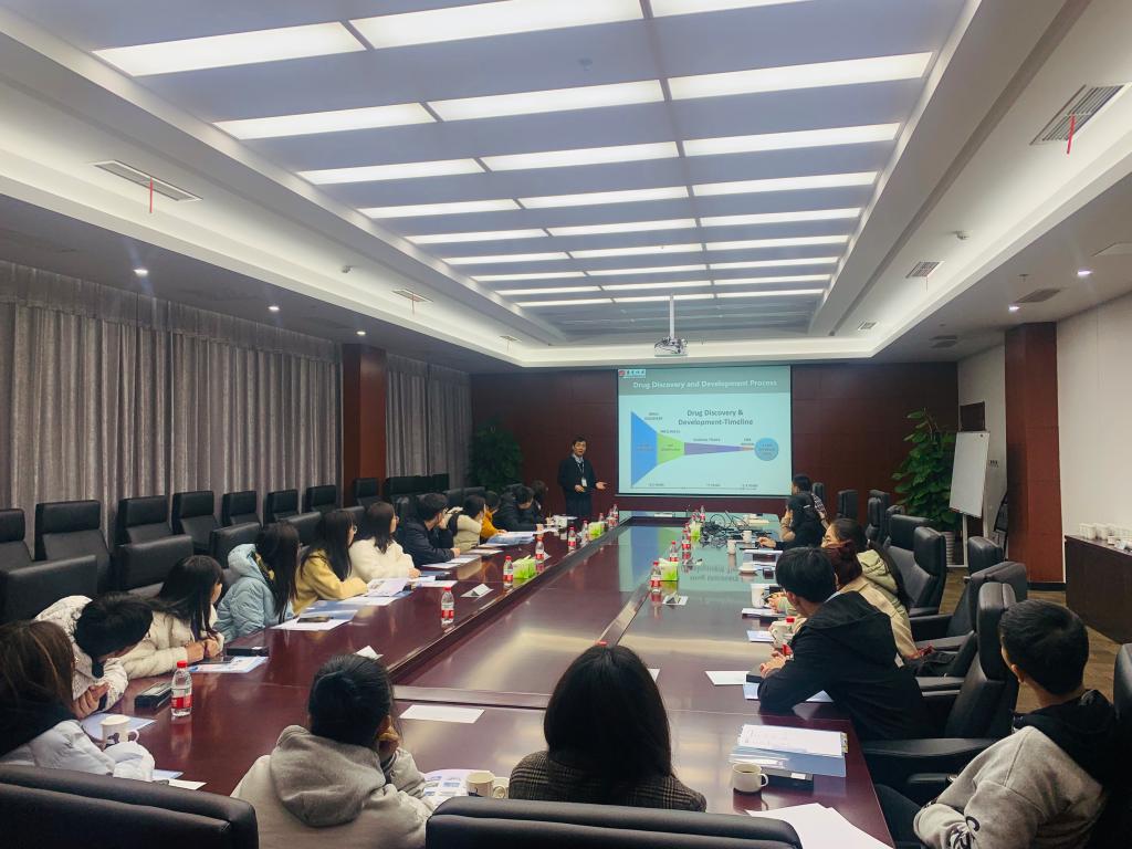 首先,付建民就康龙化成公司企业运营及91视频做了全面介绍并进行了交流,现场解答学生提出的问题。现场气氛十分活跃。随后,学生们在王有龙及相关实验室负责人带领下先后参观了公司有机合成实验室,分析实验室,DELT实验室,并了解了GMP生产的过程,通过现场的参观,感受现代化制药工作的生产工艺方法。