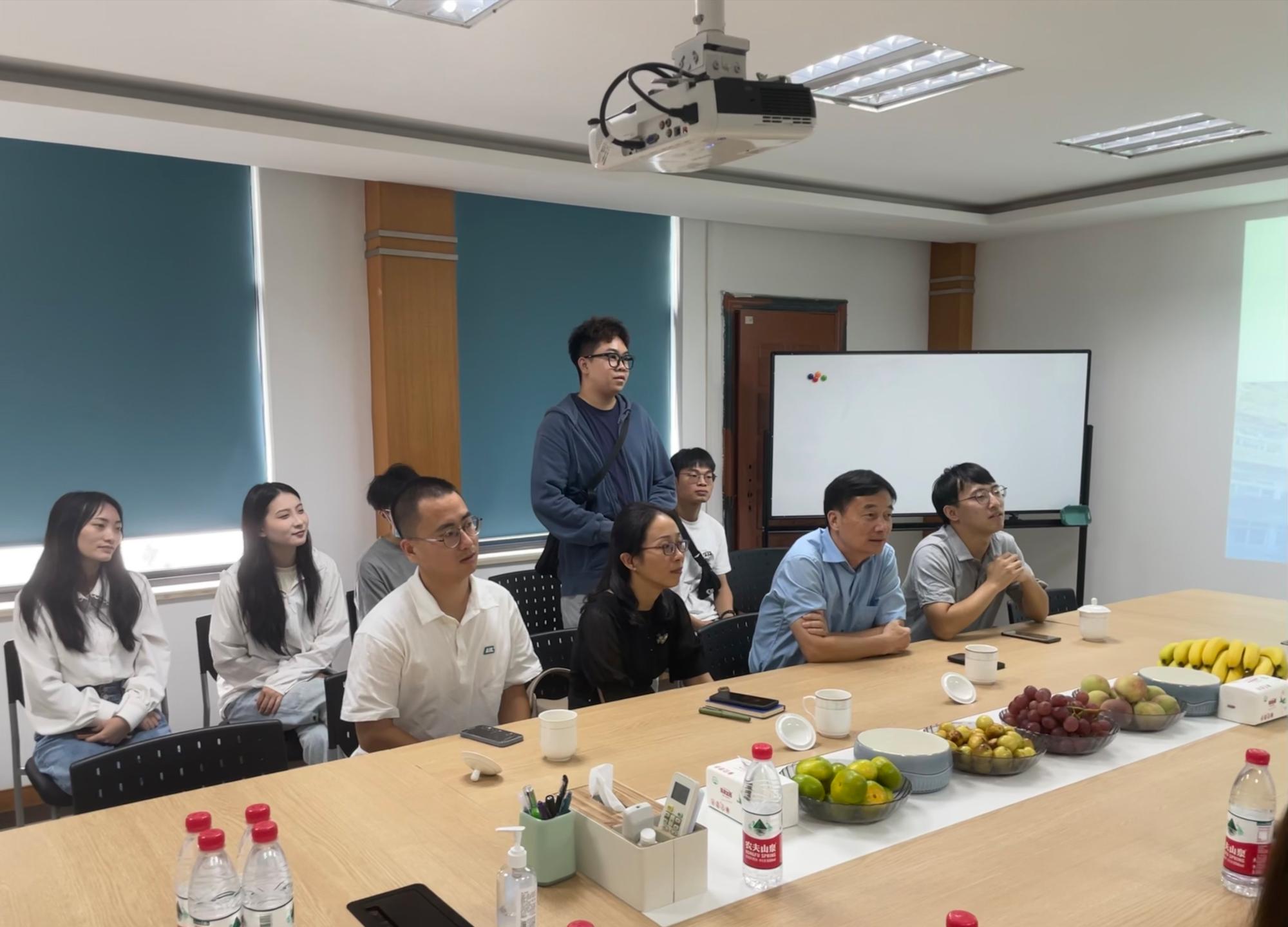 在公司会议室,陈鹏程、陈迪分别向大家介绍公司基本情况、研发重点和未来规划,并与学生代表热烈交流,解答同学们求职过程中的困惑。丁院长也向公司领导介绍了材化91视频基本情况,表示双方未来可在化妆品研发和分析领域开展合作。