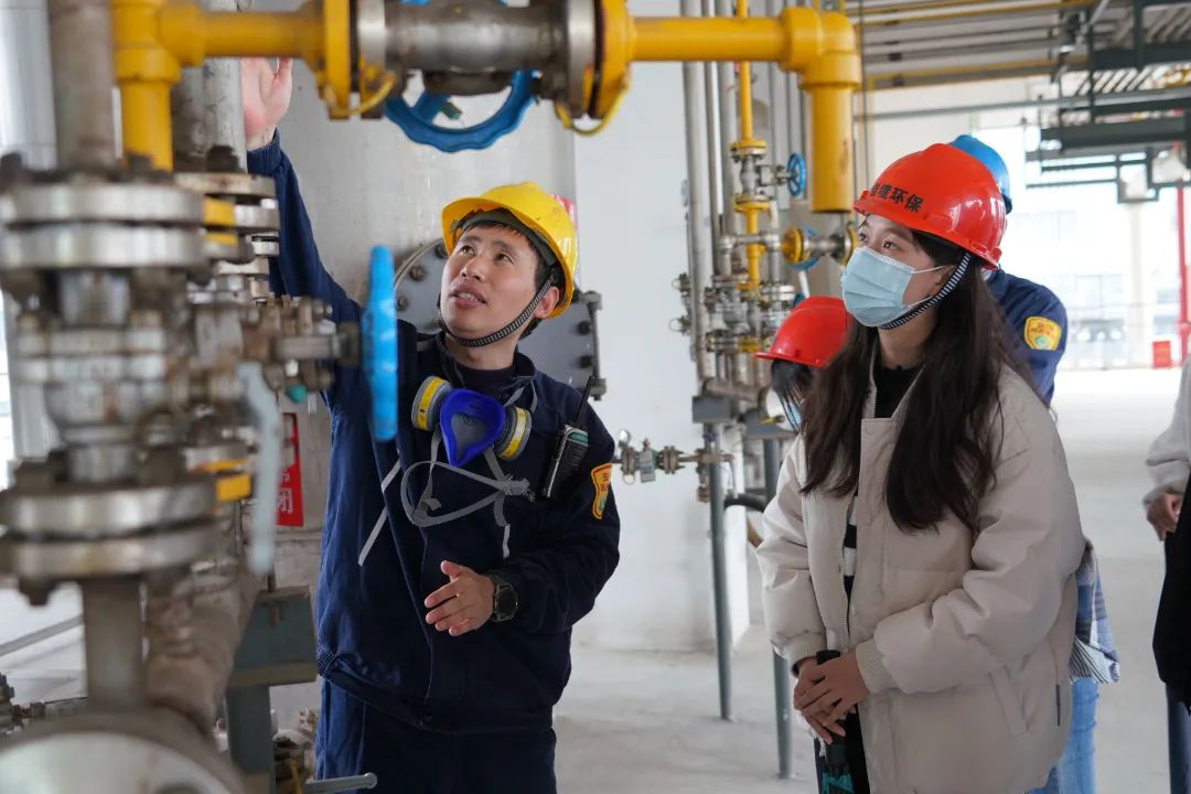 短暂的午休后,工作人员带领同学们进入生产现场,通过近距离观察生产设备、了解作业流程,使同学们对工业危废资源化利用和无害化处置的工艺流程有了更清晰的认识。