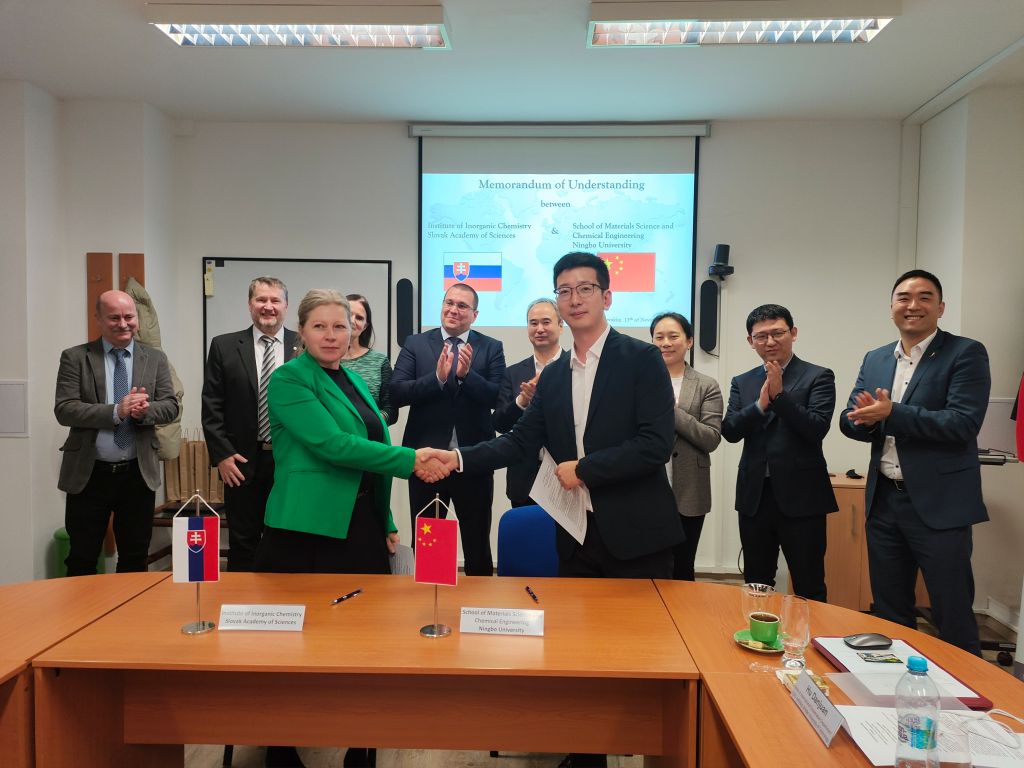 在斯洛伐克科91视频会议室,周明炯代表材化91视频与该院无机化学研究所副所长海伦娜·帕尔科维一同签订了合作协议,拓宽了我院国际合作与交流的渠道。下一步,我院将继续推进与该所在学术交流、长短期学生访学、研究生联合培养、教师互访、优质课程互换等方面开展合作,携手共进,促进两院的教育与科研合作共赢。