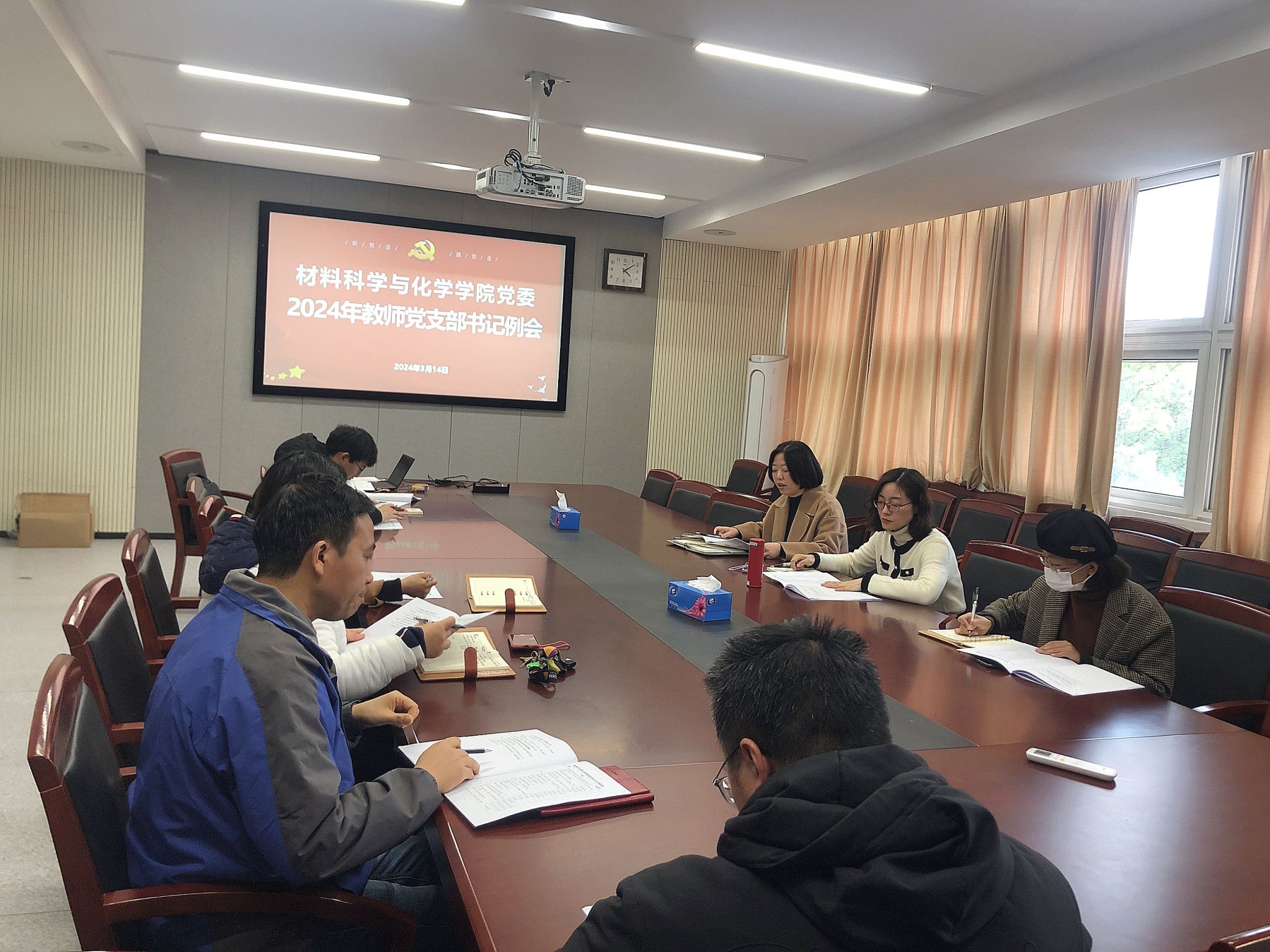3月14日下午,材化91视频党委在逸夫材化楼北楼227会议室召开新学期教师党支部书记工作例会,布置新学期党建工作。会议由党委书记陶娟主持,党委副书记尹慧、全体师生党支部书记、专职组织员、学生党建辅导员参加了会议。