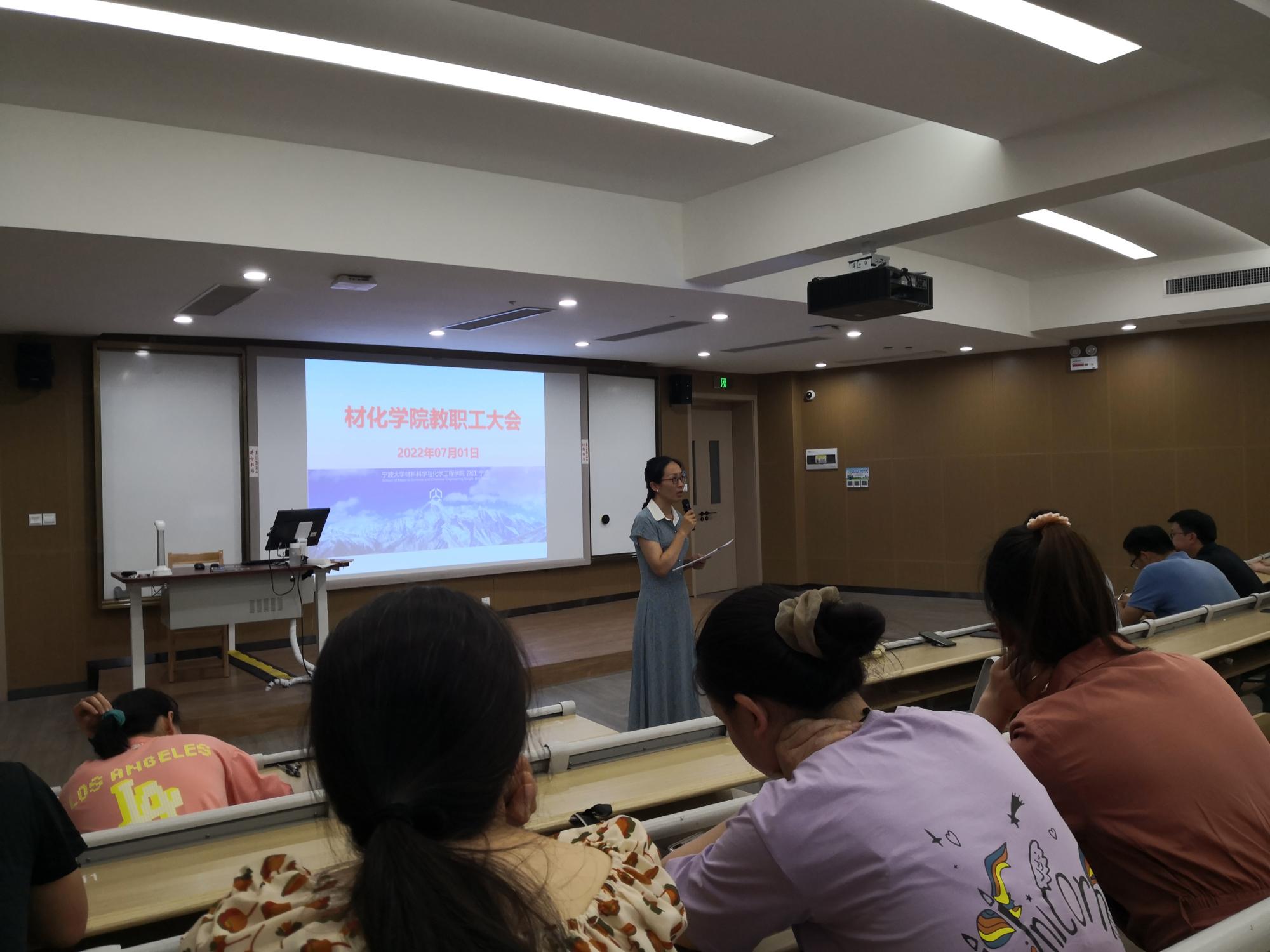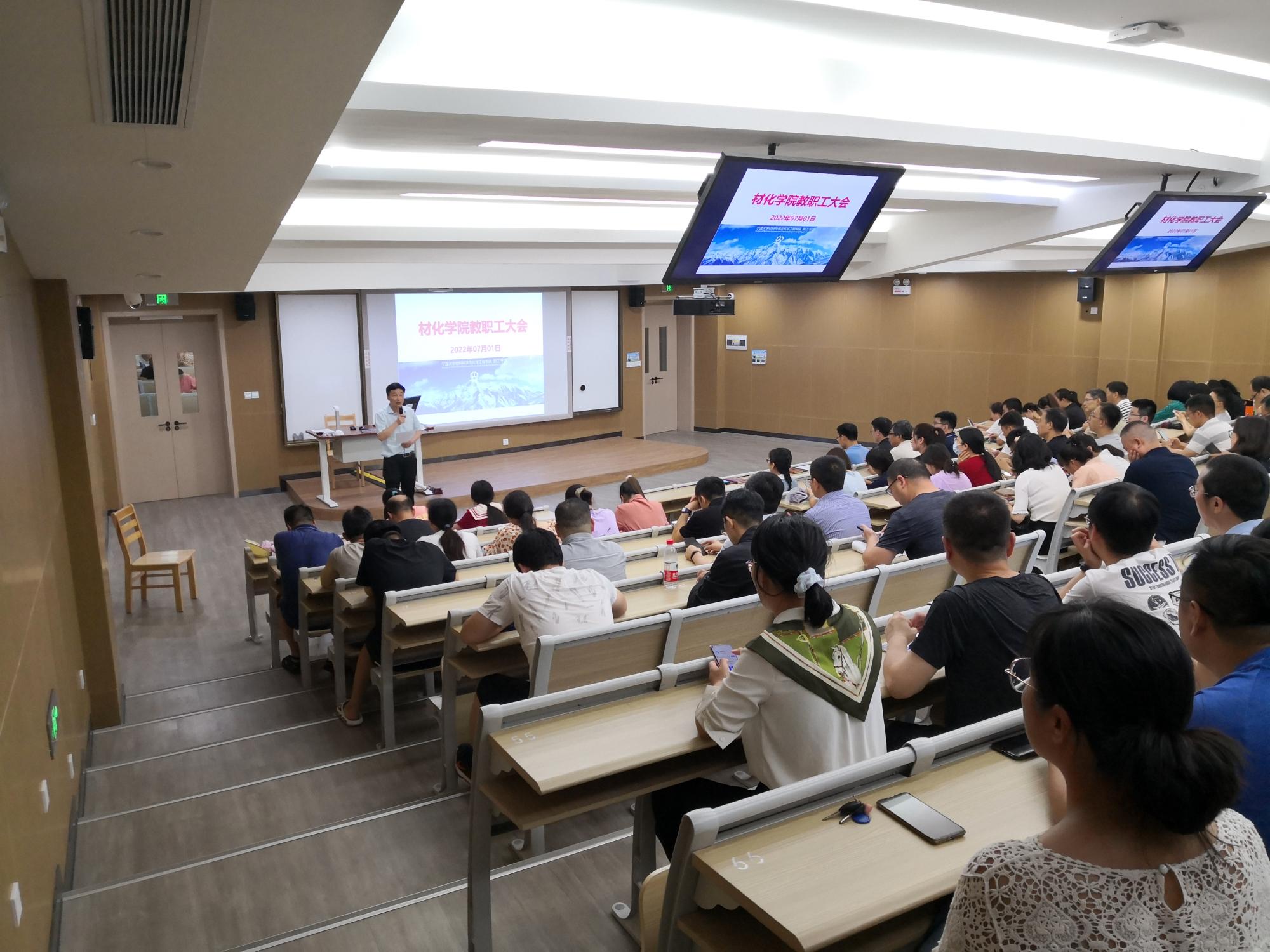 7月1日下午,材化91视频召开全院教职工大会,91视频党政班子全体成员及91视频全体教职工参加了会议。