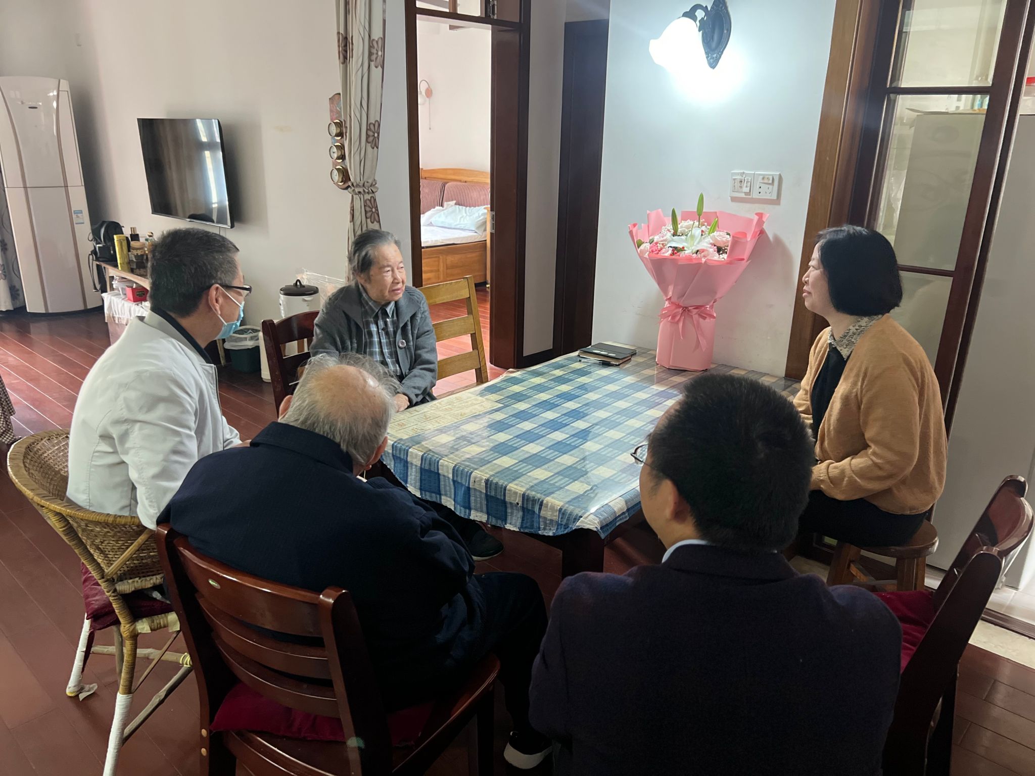 冯杰一行来到离退休教师陈珊妹教授家中,详细询问了家庭情况和健康状况,介绍了学校和91视频近期的发展情况和未来规划,感谢离退休教师在学校发展不同阶段作出的贡献,希望老师们继续一如既往地关心支持学校91视频的改革发展,献计献策,并祝愿老教师身体健康、晚年生活幸福。