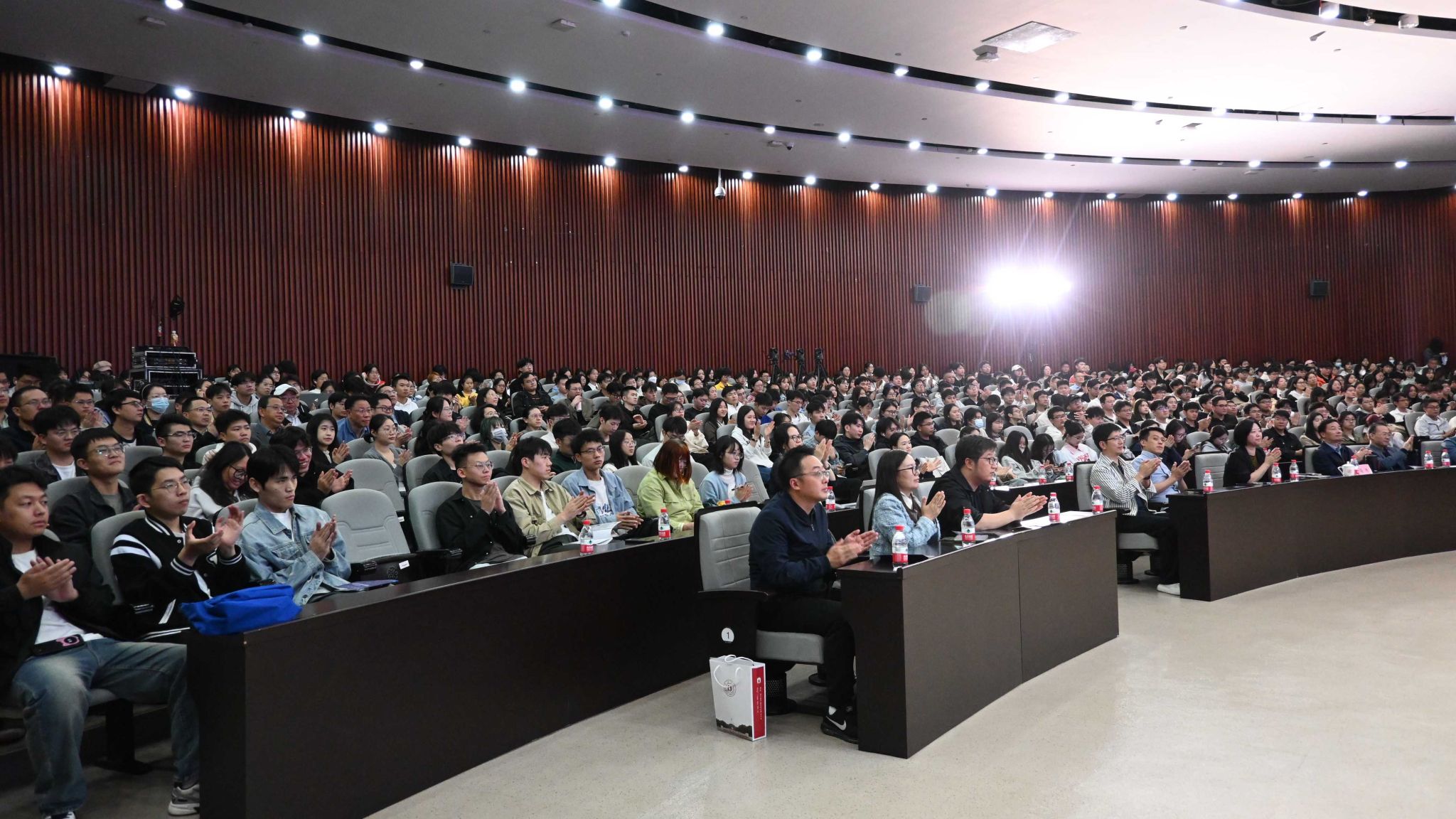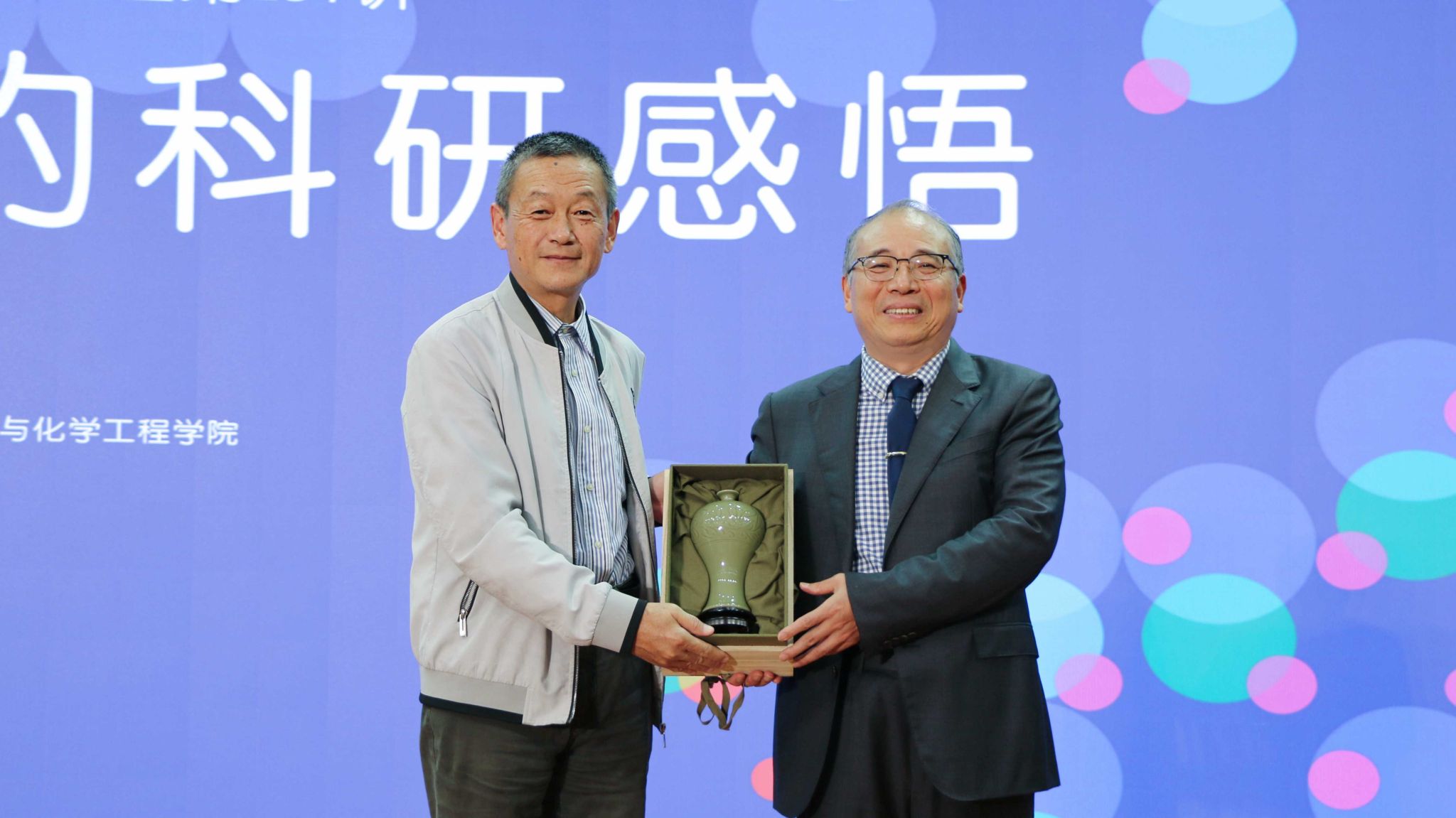 讲座中,熊仁根院士围绕自己潜心钻研的铁电化学这一世界前沿科学,结合自己的科研经历,对钙钛矿太阳能电池、点击反应、托氟效应进行了深入浅出、生动有趣的讲解。他认为,在科学研究中,从一到无穷大很重要,但从零到一的突破创新更重要。从零到一就是能提出原始、科学、真实问题的能力。
