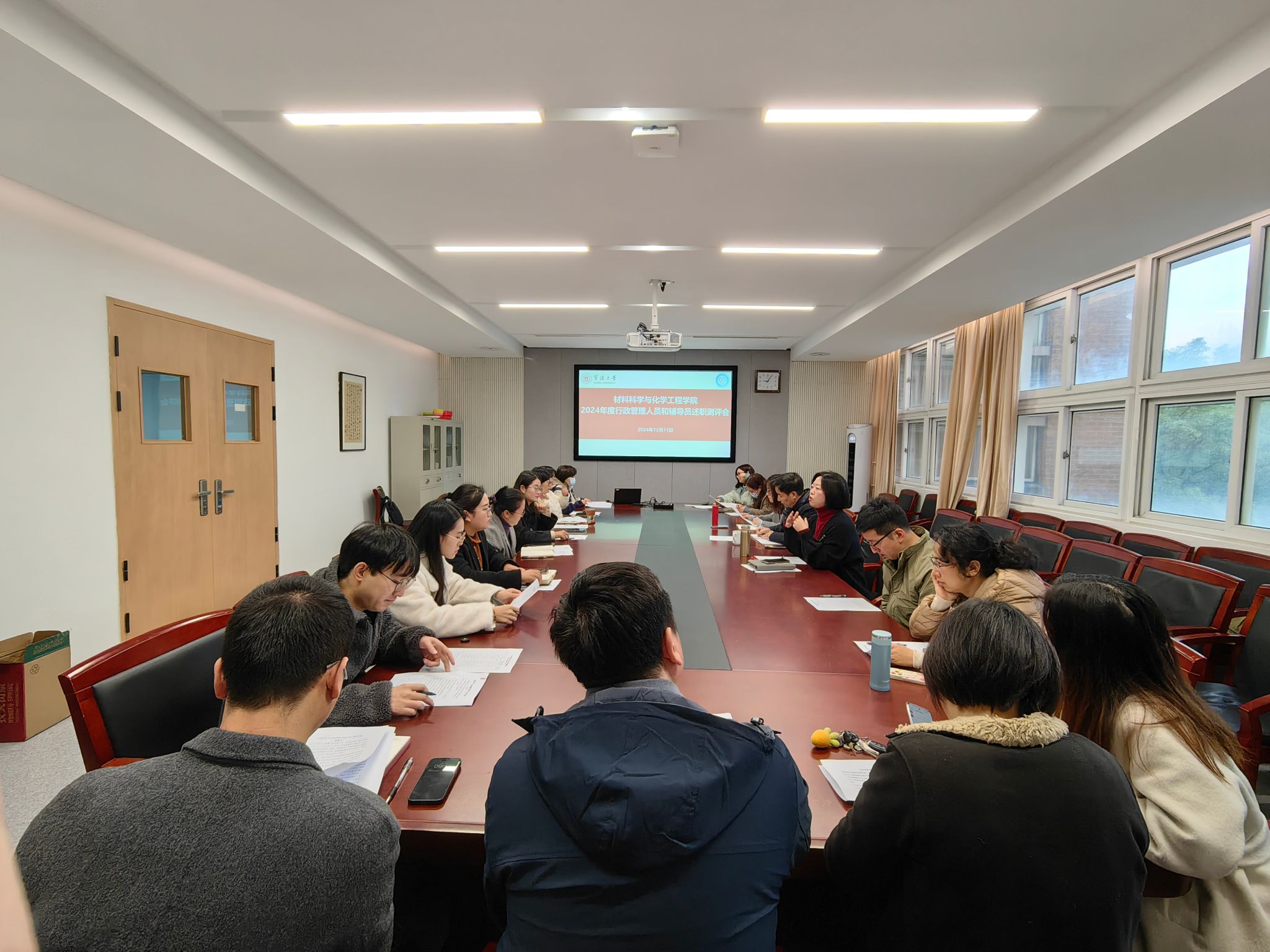 12月11日上午,材化91视频召开2024年度行政人员和辅导员述职测评会。院领导班子全程参与,由党委书记、行政副院长陶娟主持,旨在全面评估91视频行政人员和辅导员的年度工作表现。