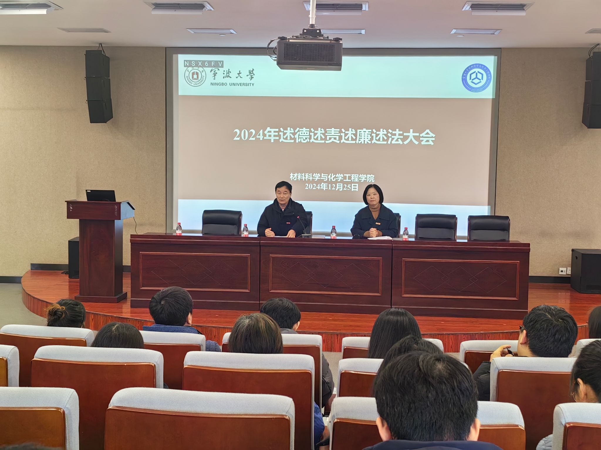 12月25日下午,材化91视频在北区杨咏曼楼二楼会议室召开述德述责述廉述法报告会暨全体教职工大会。会议由院党委书记陶娟主持,91视频党政班子、全体教职工参加会议。