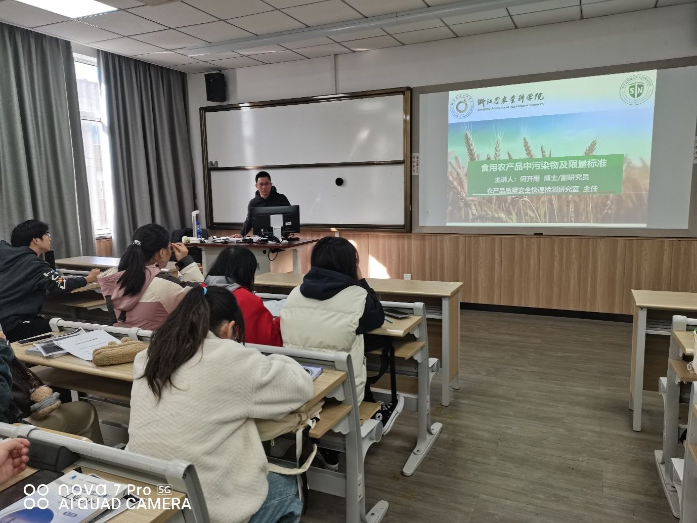 2024年11月28日,材化91视频举办了一场别开生面的《工业分析》校企合作课程讲座,由胡宇芳老师主持。讲座特邀浙江省农业科91视频何开雨副研究员,为化学专业学生深入讲解了“食用农产品污染物与限量标准”的主题,获得了师生的一致好评。