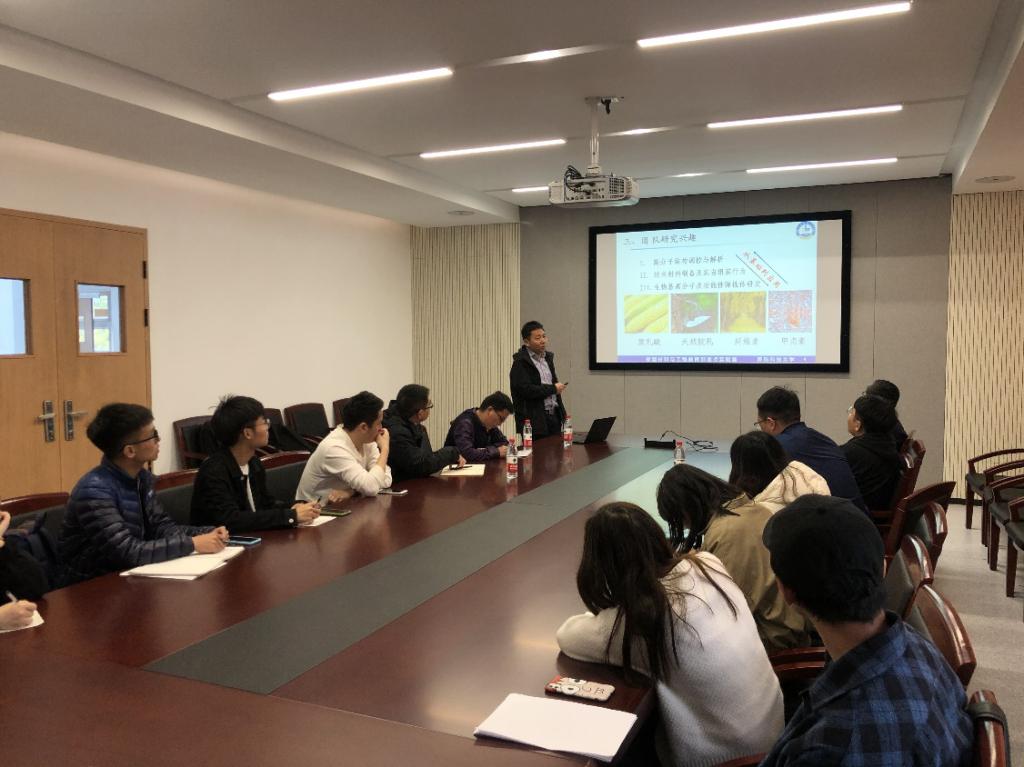 4月13日下午,青岛科技大学张建明教授受我院王宗宝教授的邀请,在宁波大学北区1号实验楼227为材化91视频师生作了题为“生物质纳米材料宏量制备及其应用研究”的学术报告。