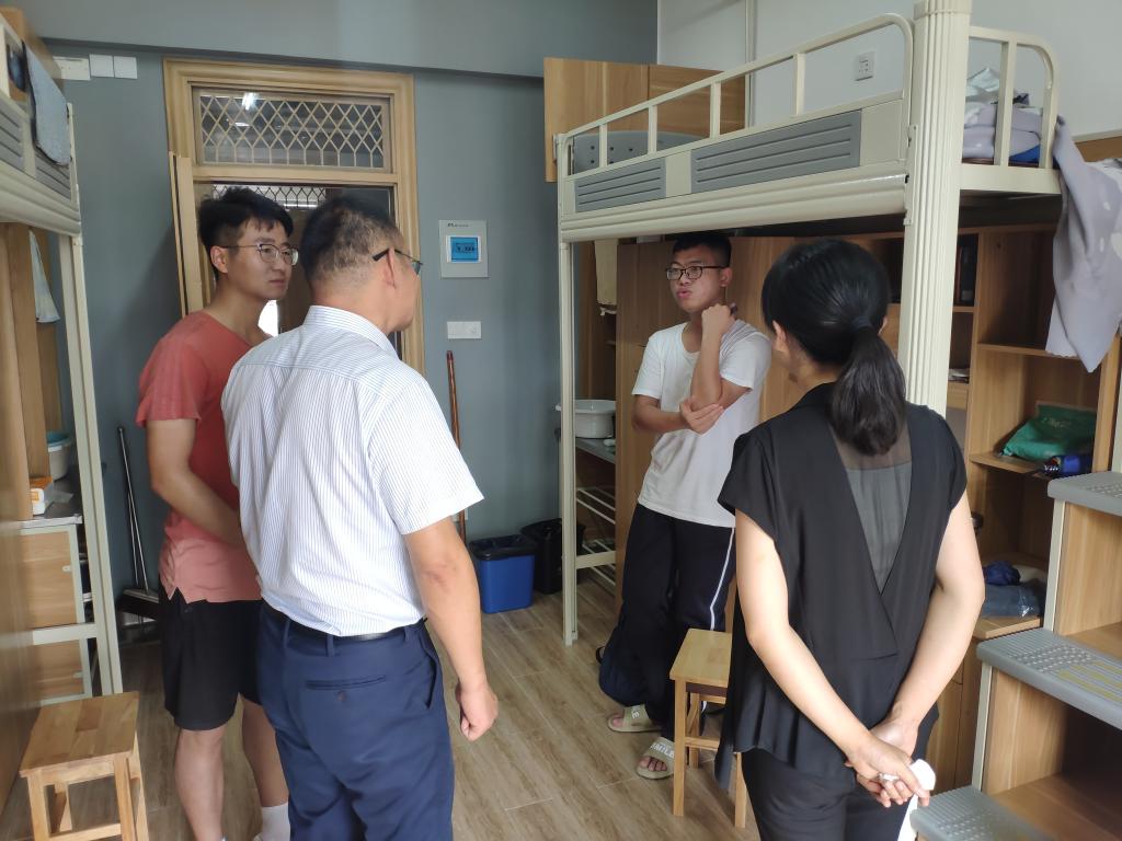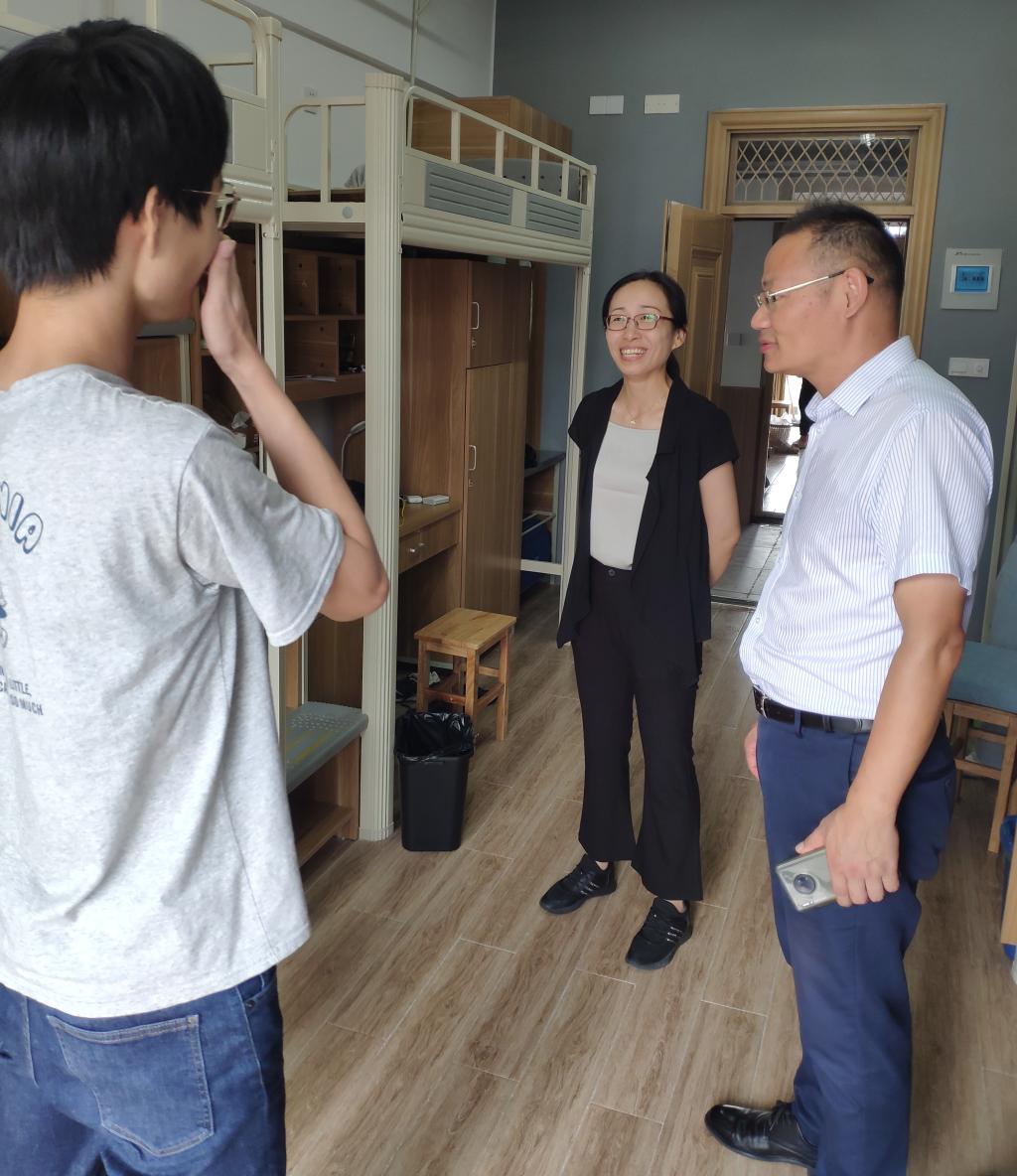 为进一步了解材化91视频2021级新生入学适应情况,让新生充分感受到91视频的关怀和温暖,9月9日中午,院党委书记罗云杰,院党委副书记朱燕带领学工办主任韩鸿儒、辅导员们一起走访了研究生新生宿舍。