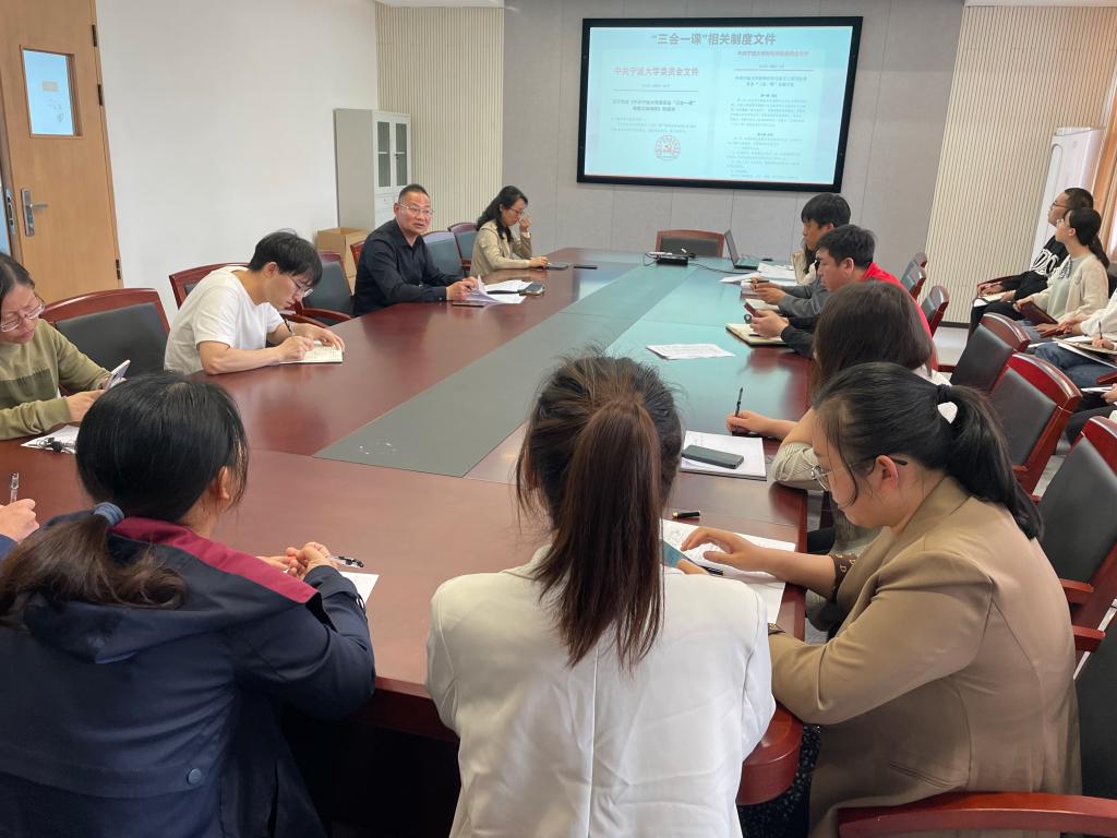 随后,罗云杰就91视频2021年度基层党建工作检查反馈情况和2022年度91视频的整改计划和工作安排作详细讲解。根据91视频的整改计划,此次会议上罗云杰带领所有党务工作者认真学习《中共宁波大学委员会“三会一课”制度实施细则(宁大党[2017]36号)。他强调,“三会一课’是党组织生活的基本形式,是加强党员日常教育管理的主要途径,加强党的建设,基础在基层,重点在支部,而“三会一课”是最基本的形式和最主要的路径,各党支部书记要将相关工作要求落实落细。