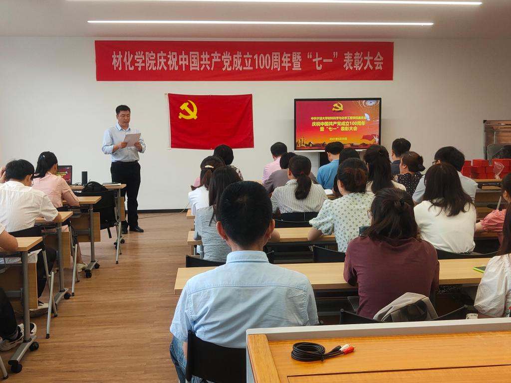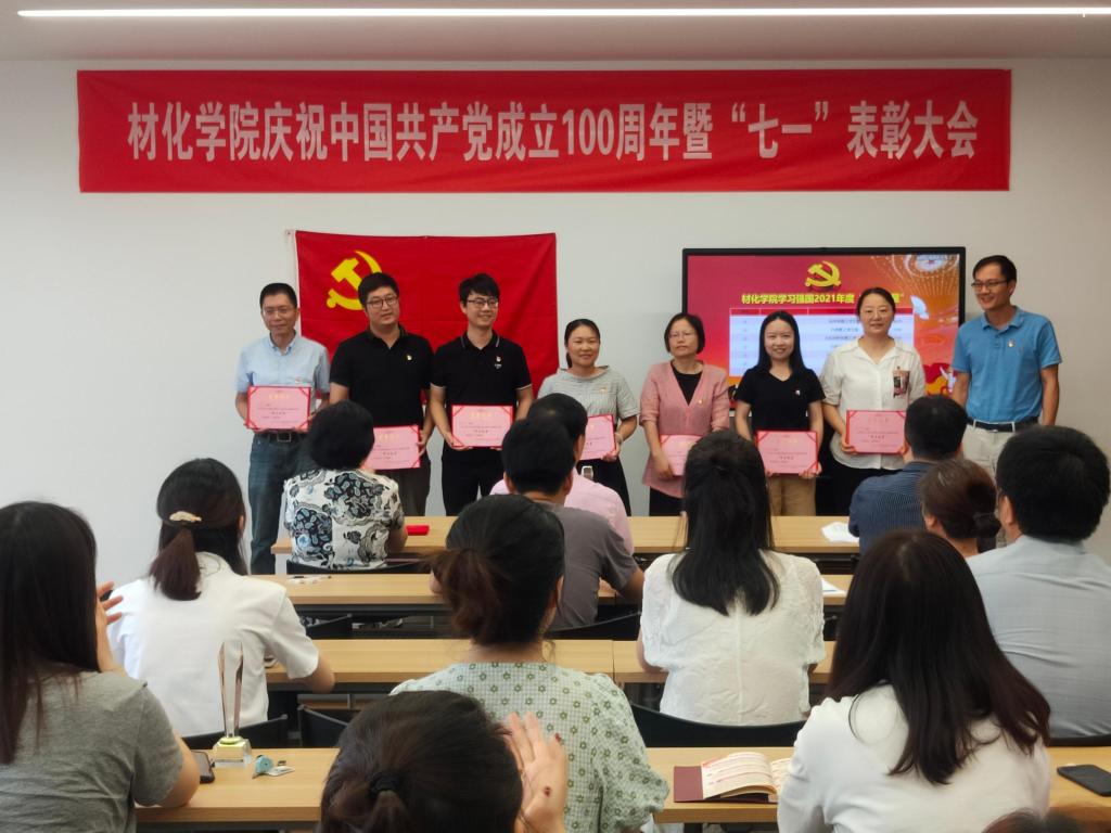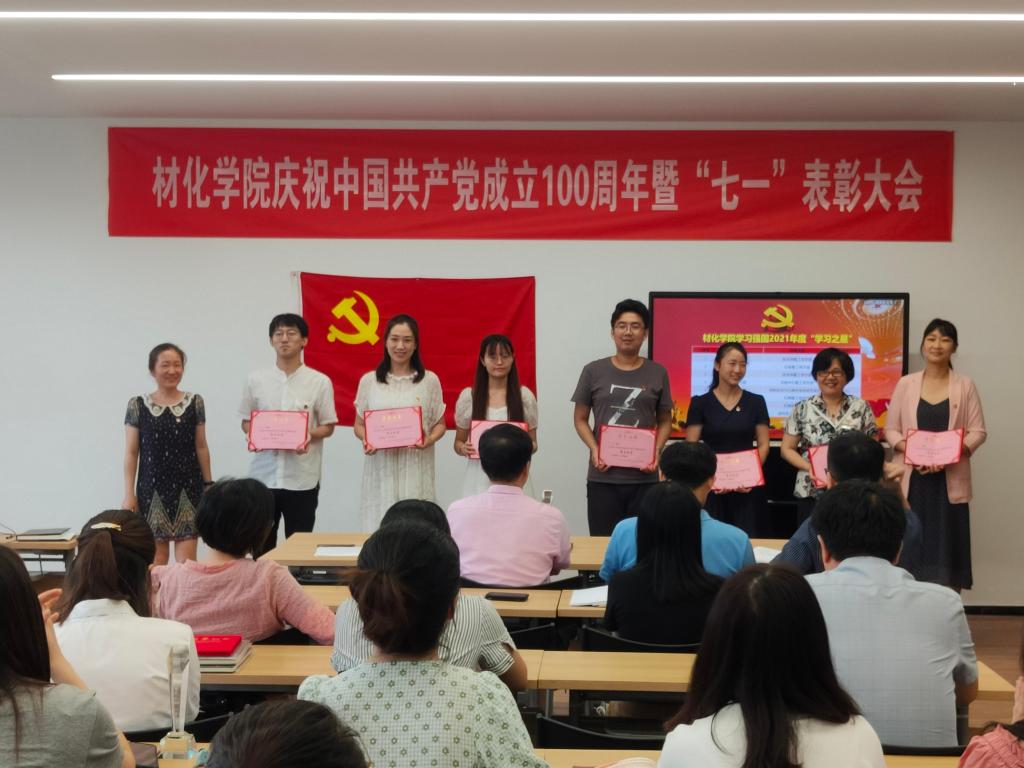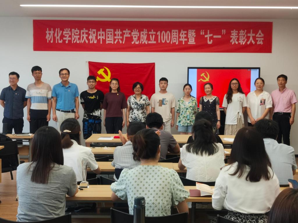 6月30日上午,材化91视频在北区1号实验楼1225教室召开庆祝中国共产党成立100周年暨“七一”表彰大会。91视频党员领导干部、全体党委委员、党支部书记及新发展党员等参会。大会由院党委委员韩鸿儒主持。