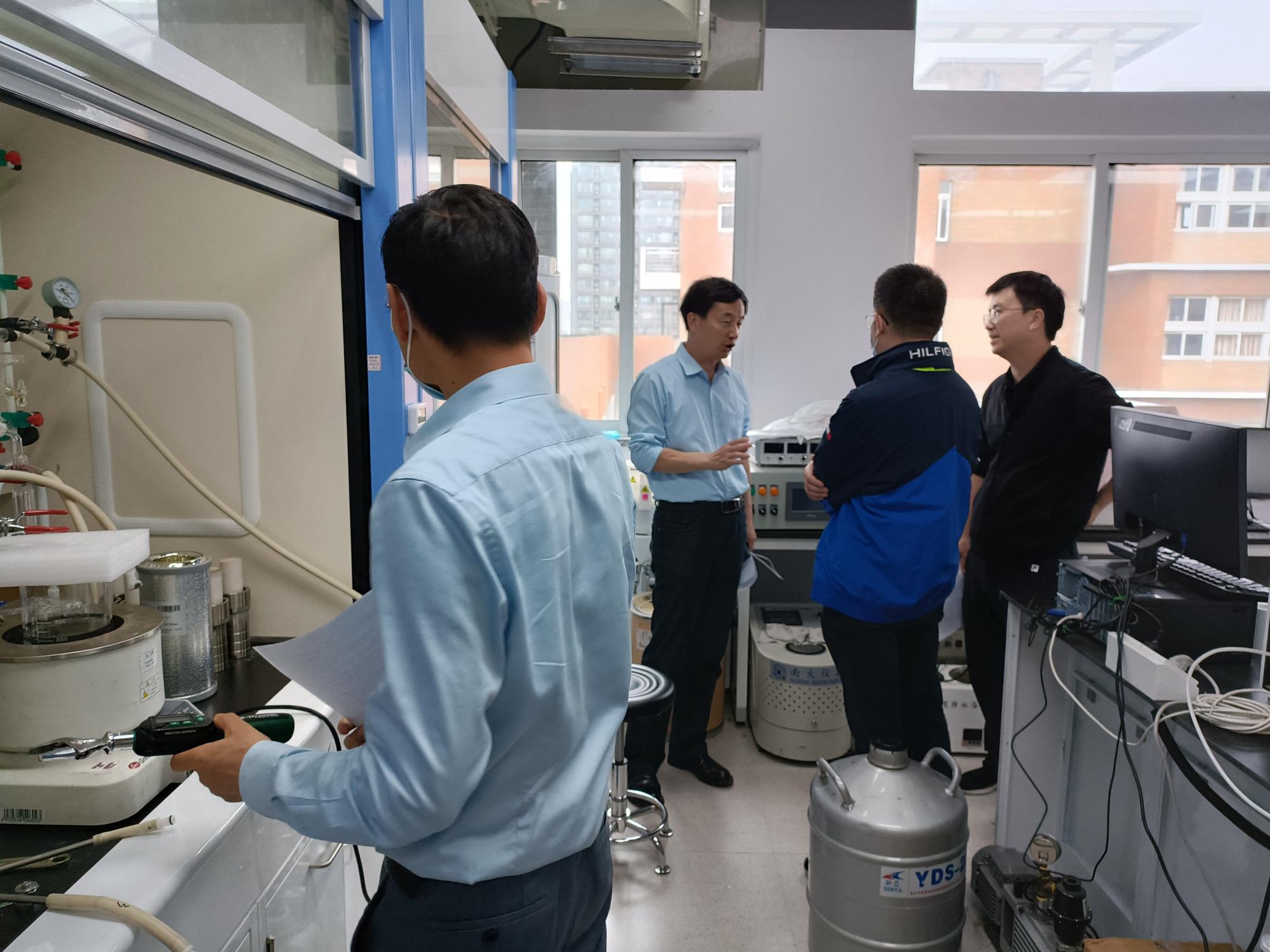 5月25日下午,由丁传凡院长、孙巍副院长、化工系主任干宁教授、教学督导委员会潘建国教授及创安办成员组成的检查组,对91视频3号实验楼4楼实验室开展安全检查工作。