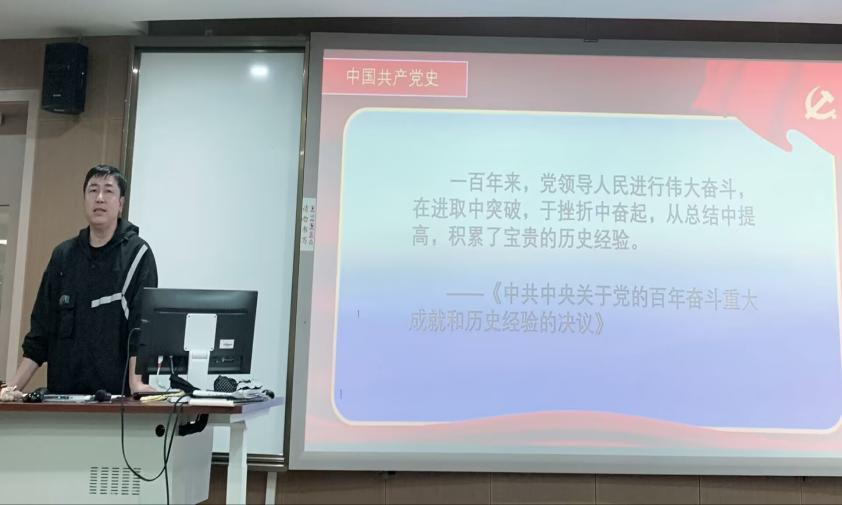院党委委员韩鸿儒以党的建设为切入点,由点到面,重点介绍党的发展历程以及社会主义制度在中国的确立。他希望全体学员认识到只有共产党才能救中国,只有社会主义才能救中国。要通过不断学习党的相关知识,提高自身的思想文化水平,成为敢想敢为又善作善成的新时代青年,为中华民族伟大复兴贡献自身力量。