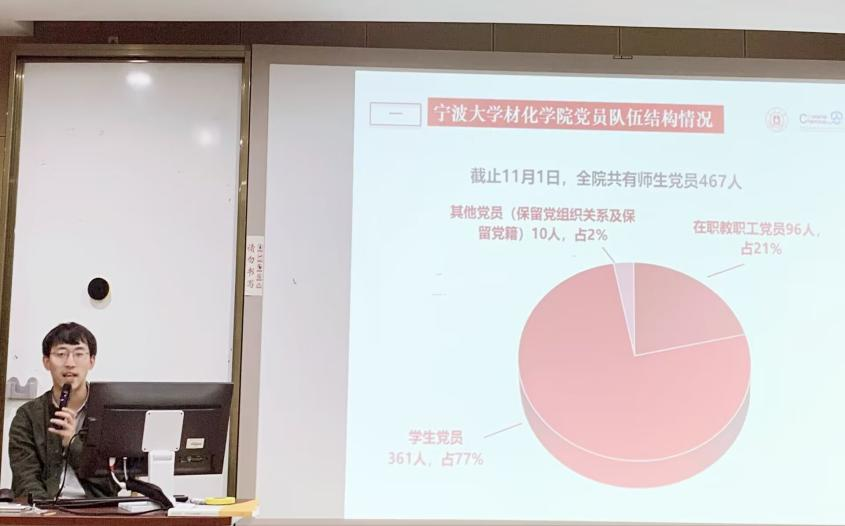 院党建辅导员姚禹阳给入党积极分子们分享了宁波大学党员发展流程,让大家对党员的一步步发展有了更深刻的认识,同时也意识到一名优秀党员的培养是一个漫长而又充满考验的过程。