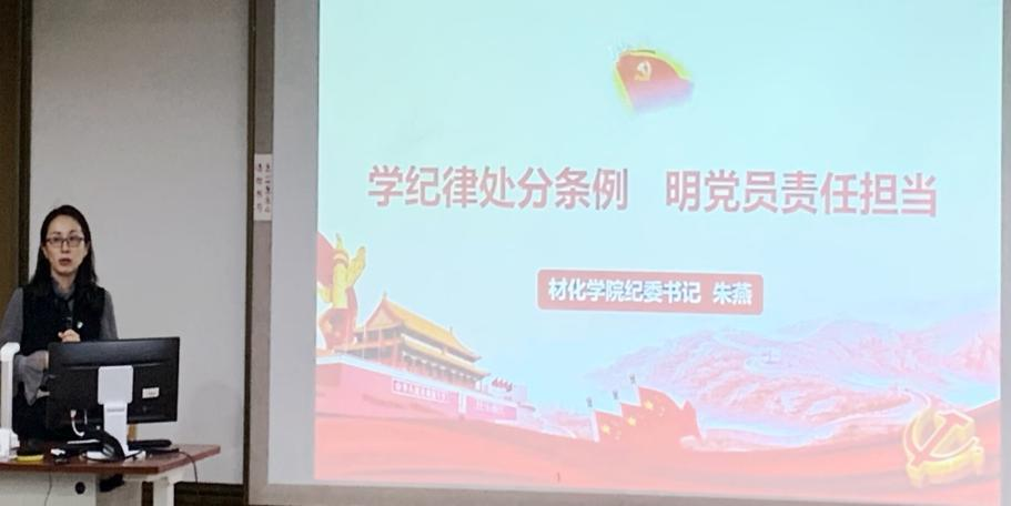 院党委副书记朱燕从《中国共产党纪律处分条例》制定的意义出发,先后讲述了该《条例》制定的原因、纪律种类分类的发展进程以及对纪严于法、纪在法前的理解,强调了权力是把双刃剑,要把权力关进制度的笼子里。