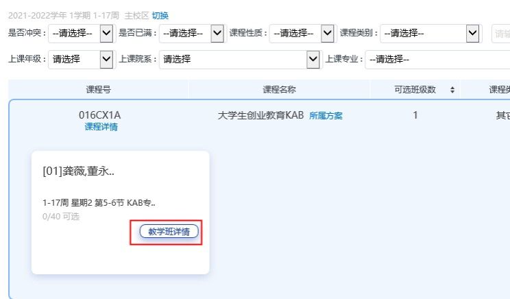 6.对于某些有特殊选课要求的课程会在选课系统中的“教学班信息”中做出说明,具体界面如下: