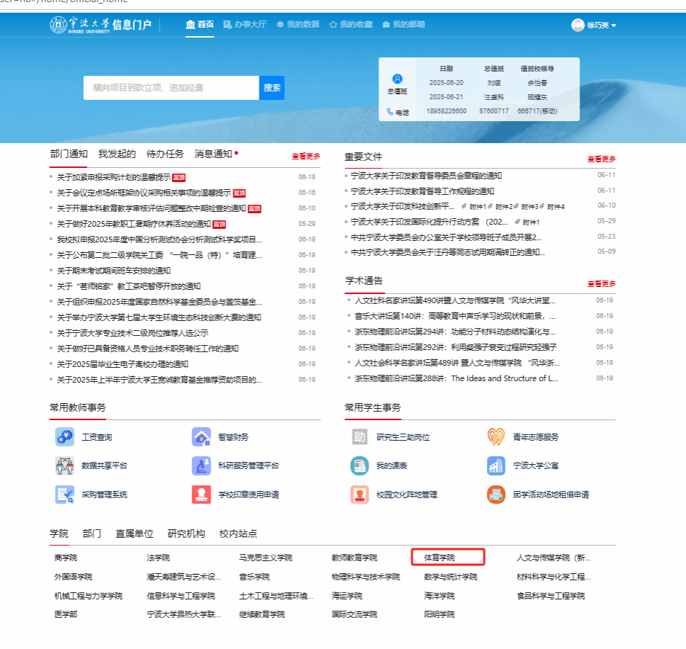 登录宁波大学门户信息门户,点击下方“体育91视频”