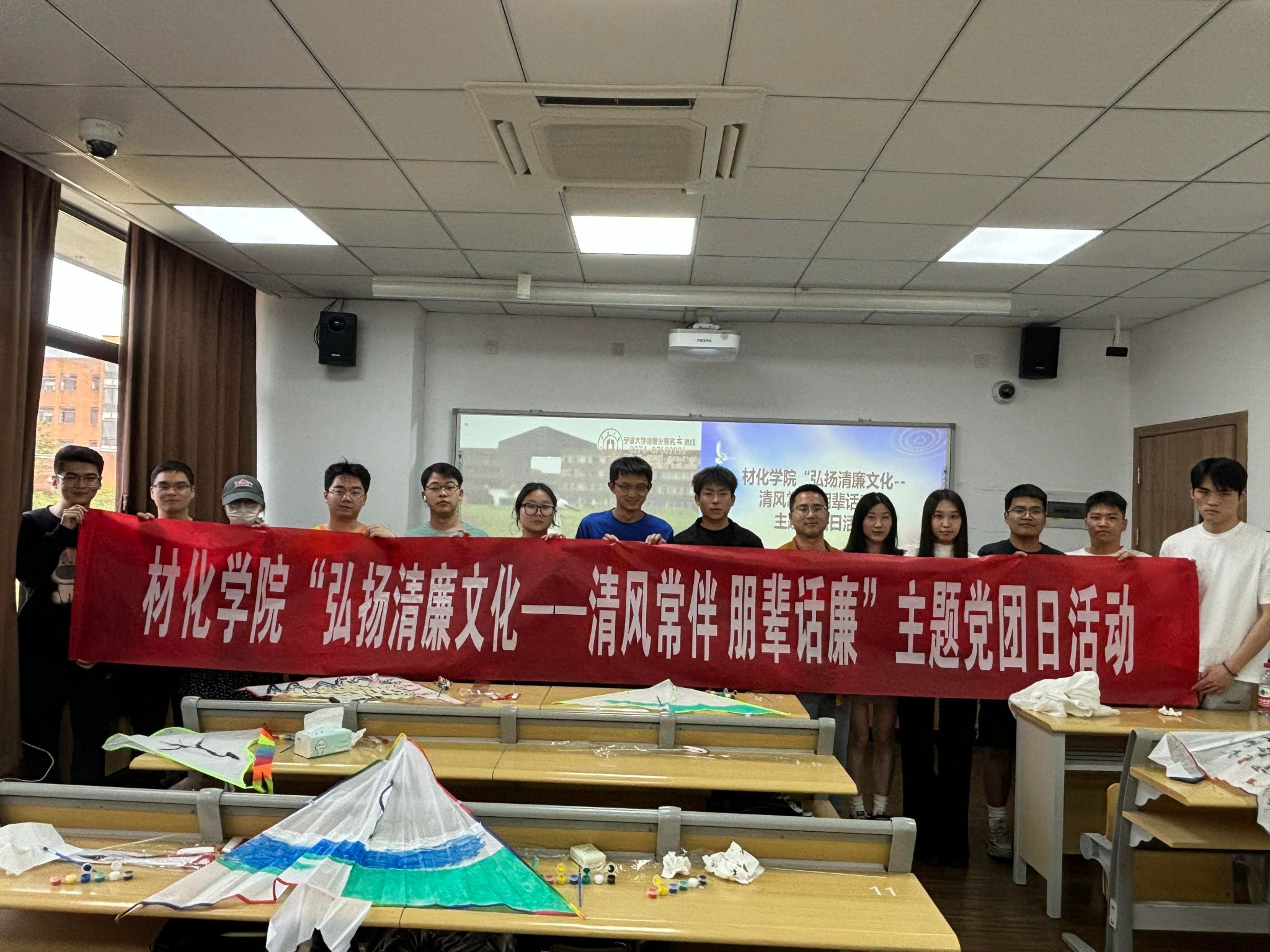 为深入推进清廉文化建设,营造崇廉尚洁的良好氛围,4月19日,研究生先进分离材料与催化党支部、24级研究生材料2班团支部联合开展了“清风常伴 朋辈话廉”风筝DIY主题党团日活动。活动将廉洁元素与传统手工艺巧妙融合,让清风正气在欢声笑语中浸润每一位参与者的心田。