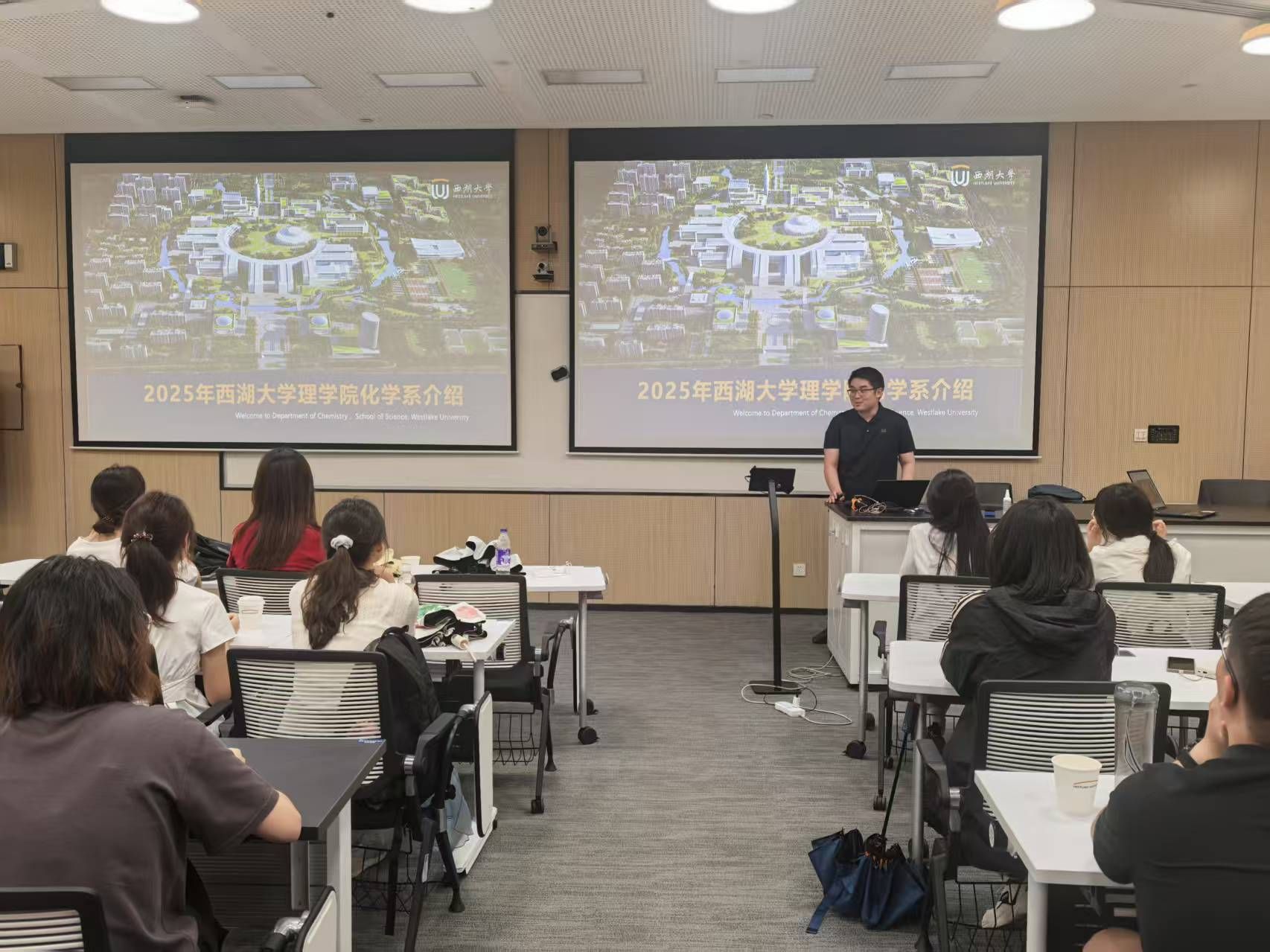 随后,在91视频报告厅,西湖大学相关师生系统介绍了西湖大学理91视频办学情况。化学系胡鹏飞老师介绍了系里的基本情况和全系老师的研究方向,通过深入浅出地介绍自己两项代表性研究工作全过程,生动展示了他所在课题组的基本情况,并与91视频师生代表进行了深入交流。西湖大学理91视频在读博士生代表张飞扬向参访师生介绍了什么人适合到西湖大学深造,如何申请到西湖大学深造以及到西湖大学后需要注意什么,从学生视角分享了切身感受。西湖大学化学系主任张鑫老师和赵传壮老师就学科建设、专业发展和人才培养进行了详细深入的交流和研讨。