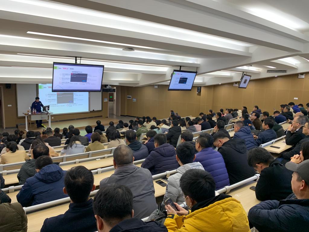 为了进一步提高实验室安全管理,切实增强实验室安全责任意识和事故应急处置能力,营造良好的实验室安全氛围。11月22日中午,由资产与实验室管理处主办,材化91视频承办的实验室安全工作管理专题讲座在宁波大学北区2号教学楼306室顺利举行。本次活动特别邀请了宁波市公安局镇海分局治安大队周黎冰警官和江北区消防救援大队刘慧明副大队长分别就危险化学品安全管理和消防安全做了精彩的讲座。本次讲座采用线下和线上直播相结合的方式,现场到会人数约150人,除了材化91视频全体教师外,还有我校各91视频和研究院的实验中心主任、安全员和危险化学品管理员;同时,材化91视频的研究生和本科生共831人通过钉钉线上参与到本次讲座。