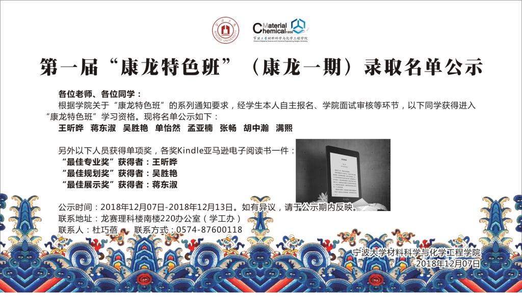 根据学院关于“康龙特色班”的系列通知要求,经学生本人自主报名、学院面试审核等环节,以下同学获得进入“康龙特色班”学习资格。现将名单公示如下: