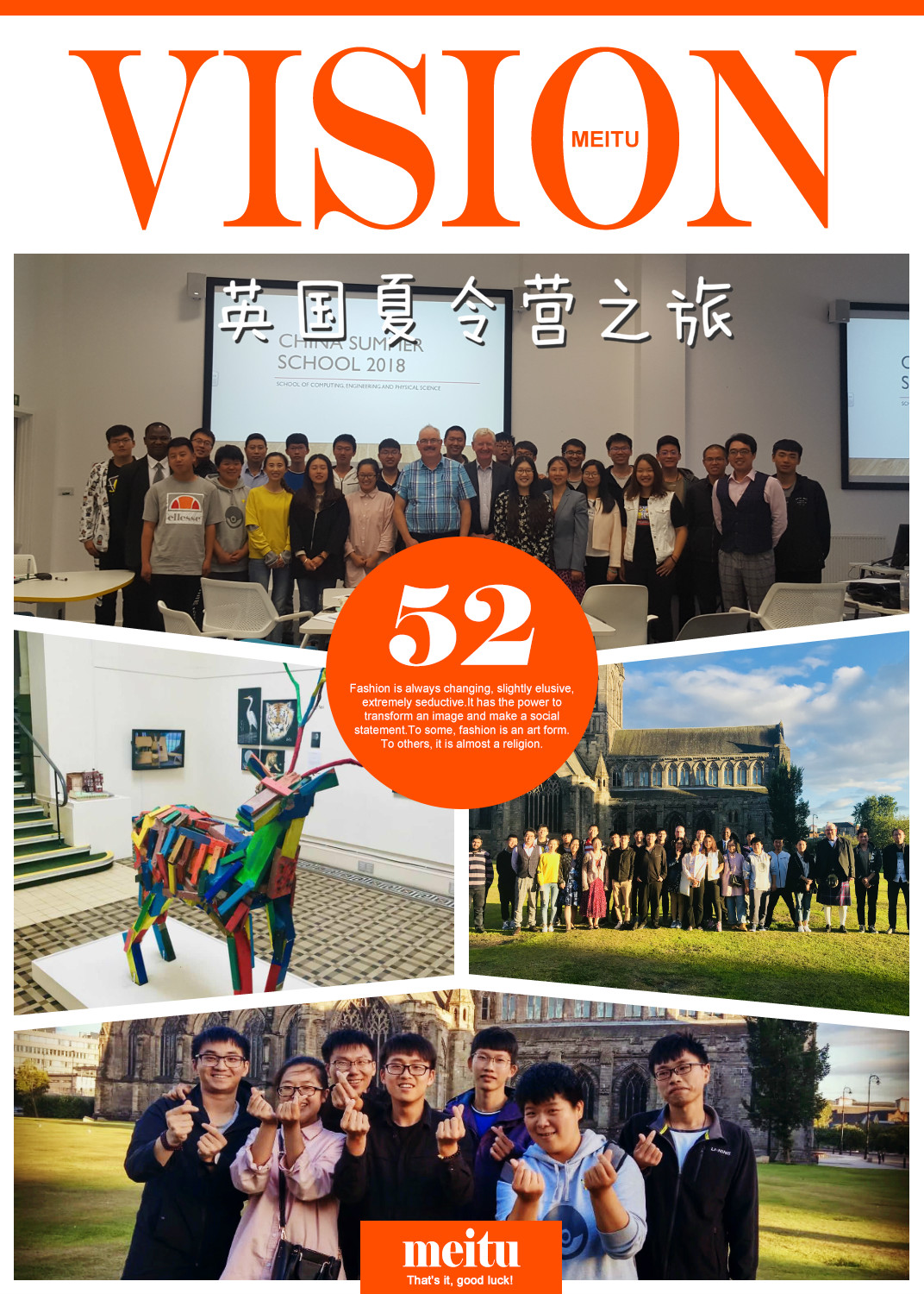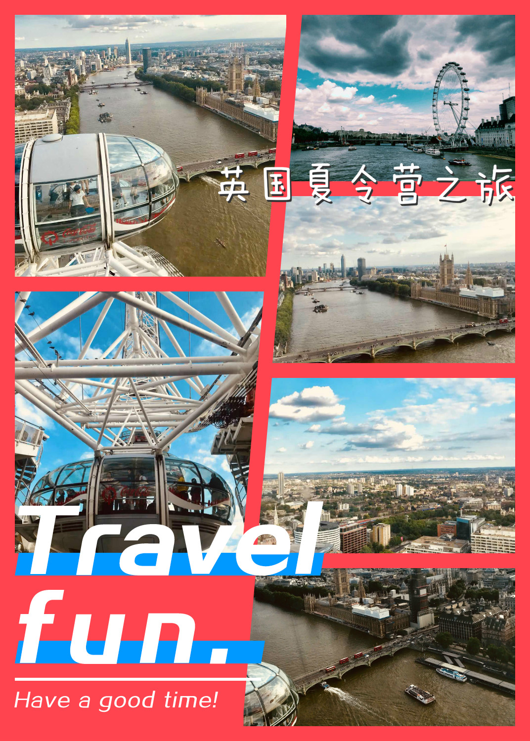 这四周的英国行,可以说是很丰富多彩,对于我们来说,最大的收获或许就是英语口语的练习了,自己也从中学到很多,从一开始对开口讲英文的恐惧到后来主动去听去说,再到最后可以基本表述出自己的想法,一点一点的进步让自己很开心,其实,本可以有更大的提高的。所以,从中也告诉自己, 要抓住一切机会去提高!
