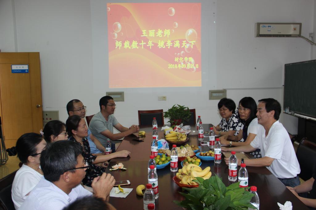为材化学院的发展所做出的贡献,并分别向王老师献了鲜花和学院众多教职工签名的纪念册。