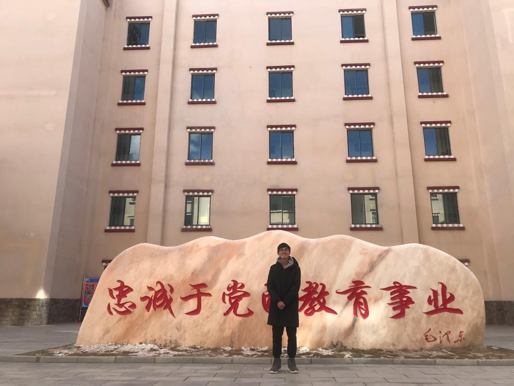 背景:陈锡栋,1996年11月生,浙江宁波余姚人,为我校材化学院2014级化学(师范)专业学生。2018年5月,积极响应教育主管部门的号召,主动报名参加并成功入选了应届大学生赴西藏专招项目,成为西藏自治区那曲市色尼区第二(杭嘉)中学的教师。陈锡栋同学自小生活在浙江沿海经济发达地区,生活条件相对优越。那曲市地处唐古拉山南坡和念青唐古拉山北麓,位于羌塘高原的东端,山地连续分布,被众多湖盆分割,湖泊星罗棋布。平均海拔4500米以上。全市国土面积43万平方公里,占西藏自治区国土面积的1/3,辖1区10县、114个乡镇。而此次陈锡栋能够主动申请去西藏工作,克服自然环境、身体条件、远离家庭等诸多不利因素,这种精神实在是值得我们大力肯定的,这种精神更是值得传承下去的。陈锡栋同学是目前为止材化学院毕业生中唯一一个去西部艰苦地区支援的同学,这个第一是非常重要的,其在同学们中的带动是很重要的。鼓励同学们“到祖国最需要的地方去建功立业”,这种理念是新时代青年的必须。而从目前的带动来看,虽然院内宣传不多,但是此次西部支教(云贵川)项目材化学院今年报名已达3人,也是达到了历史新高。