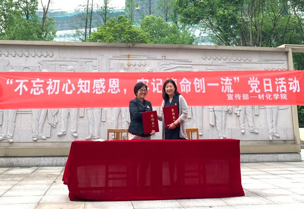 活动首先举行的是宣传部党支部和材化学院党委签订基地共建协议。根据协议,宣传部党支部对材化学院学生党员实践活动提供必要的指导和配合,材化学院负责对感恩文化园定期清理和讲解工作,挖掘感恩文化园背后的故事,感受并传承新老“宁波帮”爱国爱乡创新创业的精神。随后,材化学院两位学生党员为大家讲解91视频