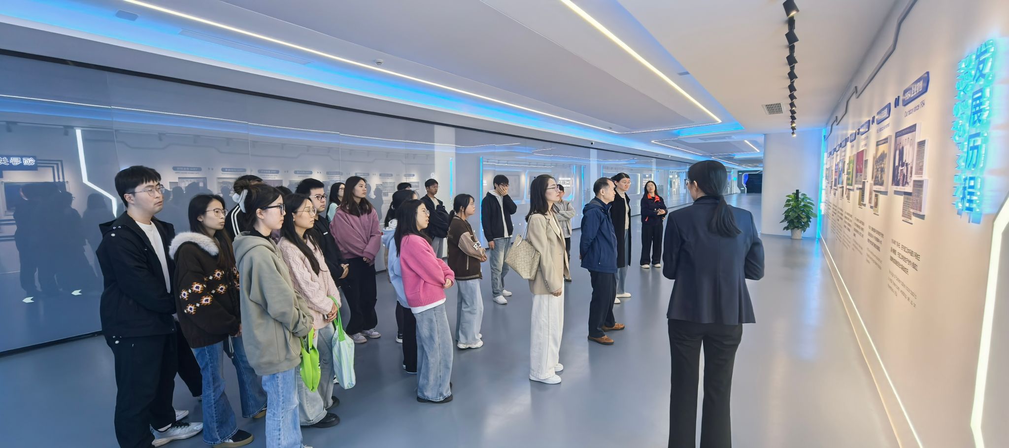 在公司负责人带领下,材化91视频师生一行先后参观了公司5G智慧工厂的展厅和黑灯车间,详细了解公司研发和生产的全过程,对公司工作环境和工作内容有了切身感受。参观过程中,总裁办林主任详细介绍了公司的发展历程、主营产品和生产流程、AI质检、自动化包装、智慧仓储等情况。最后校企双方就产学研合作和同学们关注的职业能力培养、职业发展路径和前景等问题进行了深入的座谈交流。