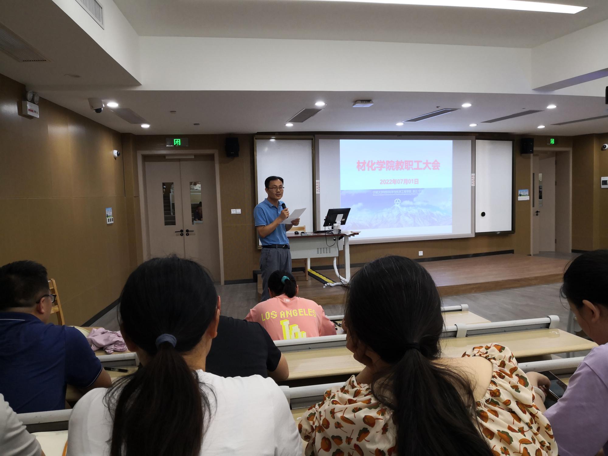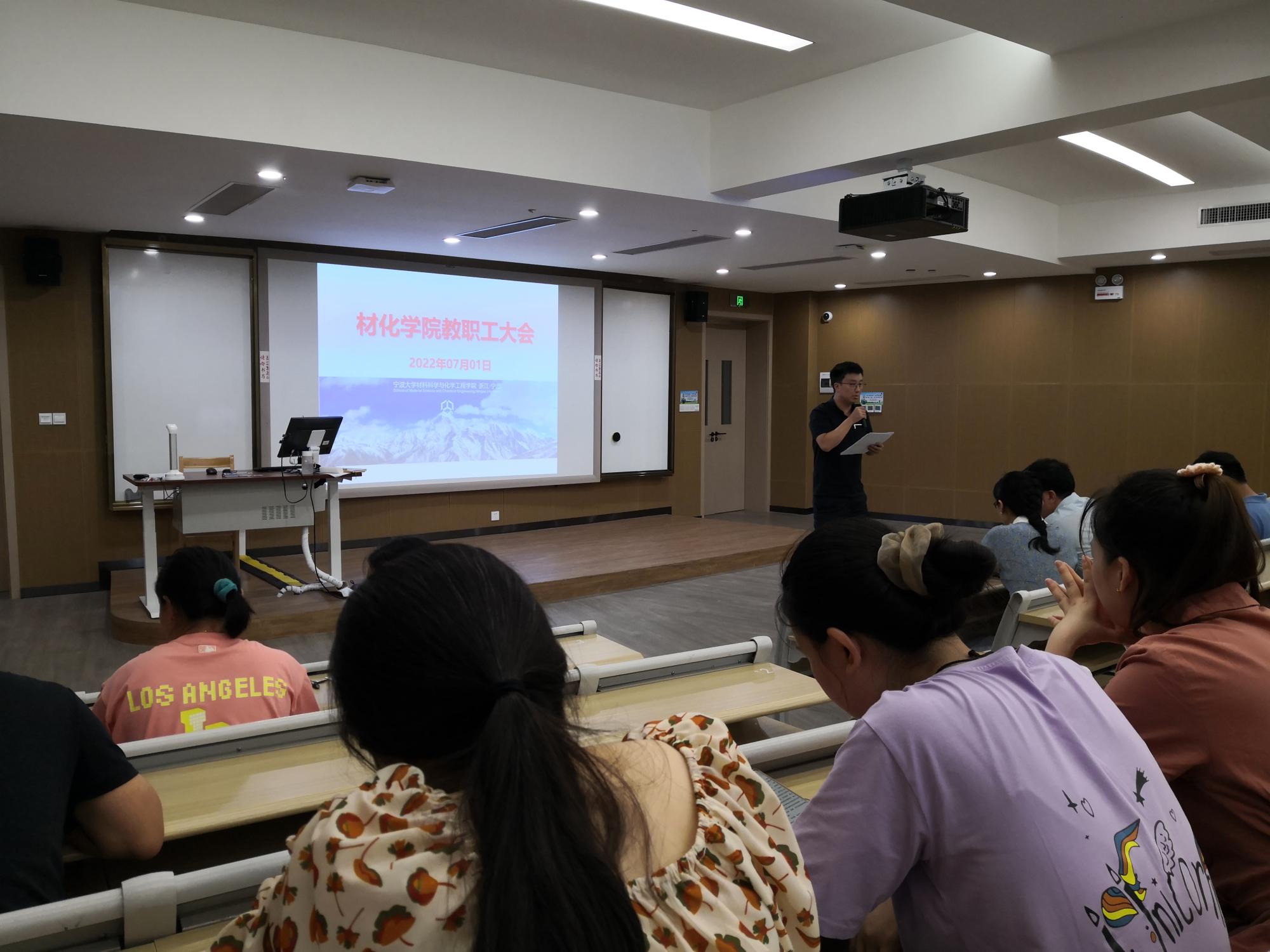 7月1日下午,材化91视频召开全院教职工大会,91视频党政班子全体成员及91视频全体教职工参加了会议。