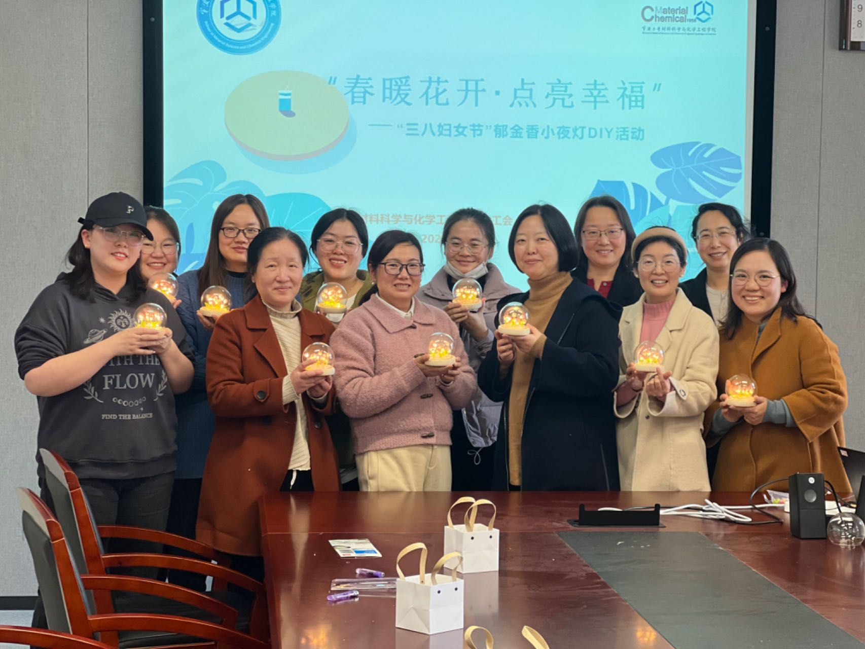 3月8日下午,材化91视频在1227会议室举行三八妇女节郁金香小夜灯制作活动。