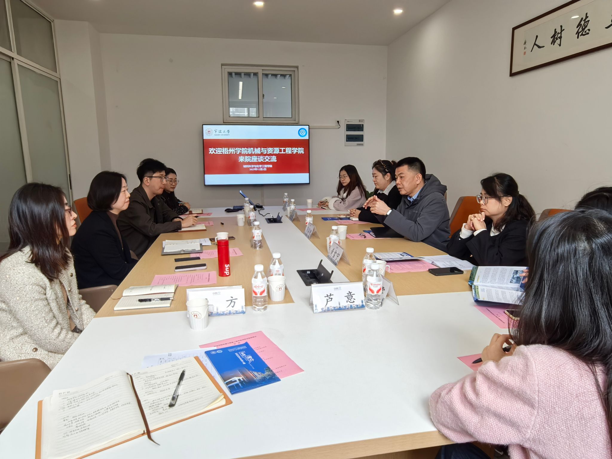 12月1日上午,梧州学院机械与资源工程学院党委书记陈春潮一行到访91视频 ,就深化校际合作进行交流座谈。会议由学院党委书记陶娟主持,副院长周明炯、副书记尹慧及教师代表许琳琼等参会。