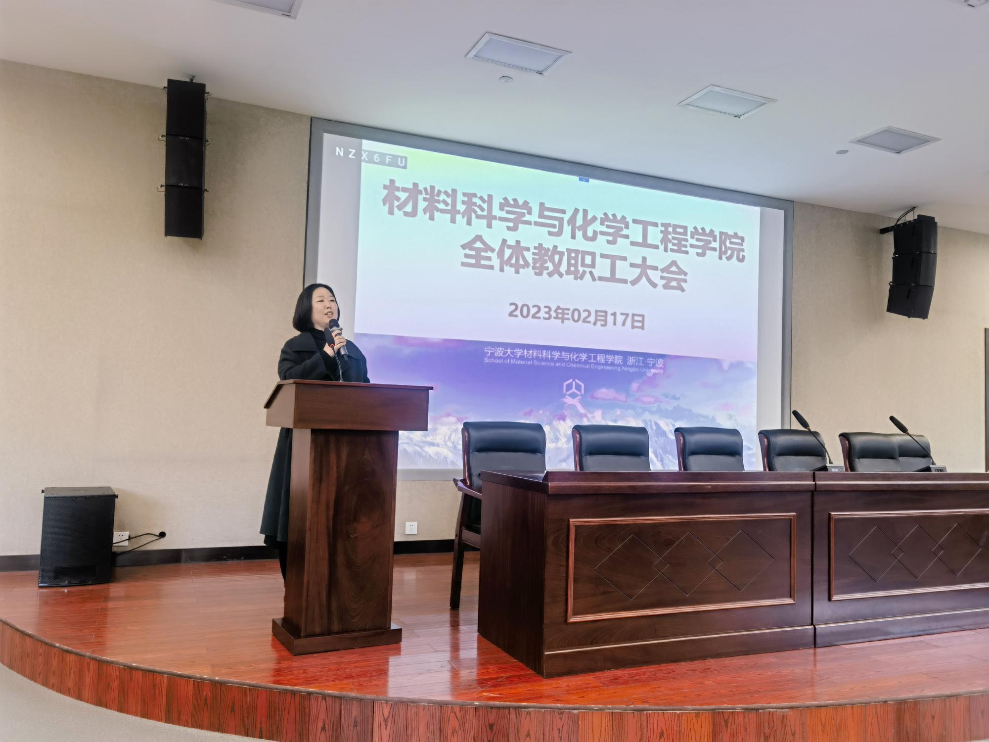 2月17日,材化91视频在杨咏曼楼双创二会议室召开新学期全院教职工大会。会议由党委书记陶娟主持,91视频党政班子成员、全体教职工参加了会议。