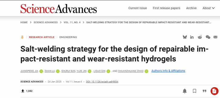 2022级硕士研究生贾江鹏为第一作者。赵传壮团队围绕智能高分子材料展开研究,在高分子化学和软物质力学的交叉领域取得了一系列进展,在Science Advances,Advanced Materials,Progress in Polymer Science,Macromolecules等期刊发表多篇论文。