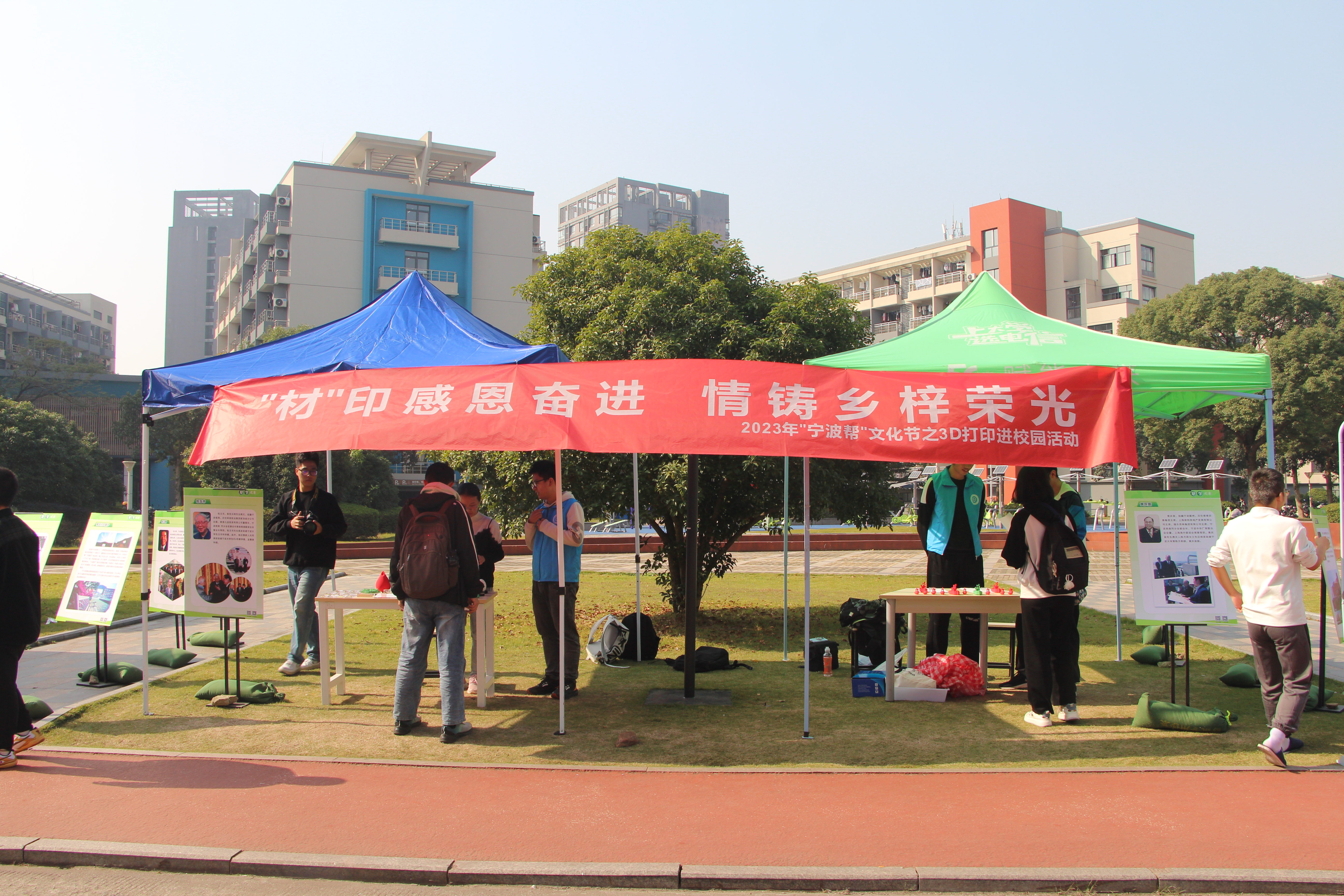 11月23日,材化91视频在北区学生公寓广场举办宁波大学2023年“宁波帮”文化节之“‘材’印感恩奋进,情铸乡梓荣光”3D打印进校园活动。