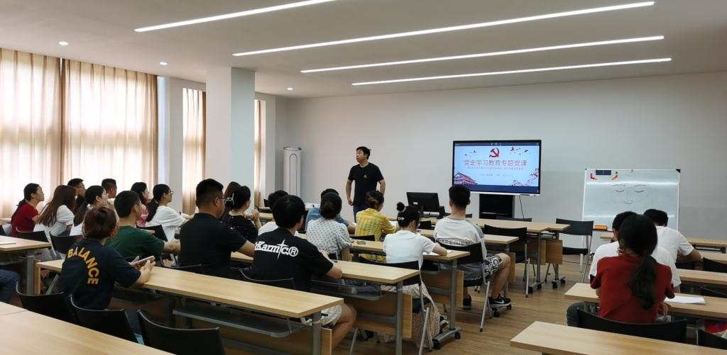 委员会关于开展“党旗在基层一线高高飘扬——以实际行动庆祝中国共产党成立100周年”主题党日活动的实施方案》开展形式多样、内容丰富的主题党日活动。6月初,91视频党委号召党委委员、支部书记共计22名,成立院级党史宣讲团, 集中开展了为期一个月的下基层上党课活动,重点学习党的经典理论,重温党的光辉历史。截止本月底,91视频共计开展党课24场,参与党员576人次。91视频以实际行动庆祝中国共产党成立100周年,践行学史明理,学史增信,学史崇德,学史力行的指导方针。通过上党课,学党史,让师生党员学思践悟,让材化91视频行稳致远。
