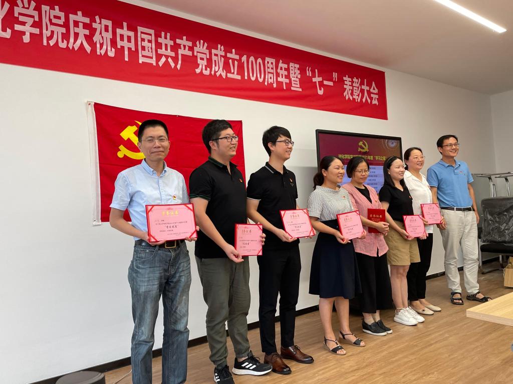 6月30日上午,材化91视频在北区1号实验楼1225教室召开庆祝中国共产党成立100周年暨“七一”表彰大会。91视频党员领导干部、全体党委委员、党支部书记及新发展党员等参会。大会由院党委委员韩鸿儒主持。