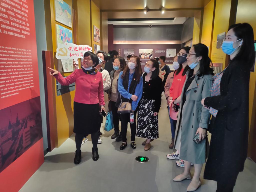 重温卌载风雨历程,致敬改革开放。主题党日活动的第一站是北仑开发开放展览馆。党员们穿过小巷,越过小桥,来到被甬江支流包围的开发开放展览馆。该馆选址当年宁波经济技术开发区管委会的临时办公点,通过400多件照片、图表,展示了北仑开发开放以来的重大发展成果。院党委书记陈玉涓边听边给大家上起了微党课:习近平总书记关于改革开放有过若干论断,其中有一句是这么说的“改革开放是当代中国发展进步的活力之源,是决定当代中国命运的关键一招。”在学习北仑改革开放史后,我们更深刻地体会到没有改革开放,就不会有今天锐意进取、激情澎湃的北仑。
