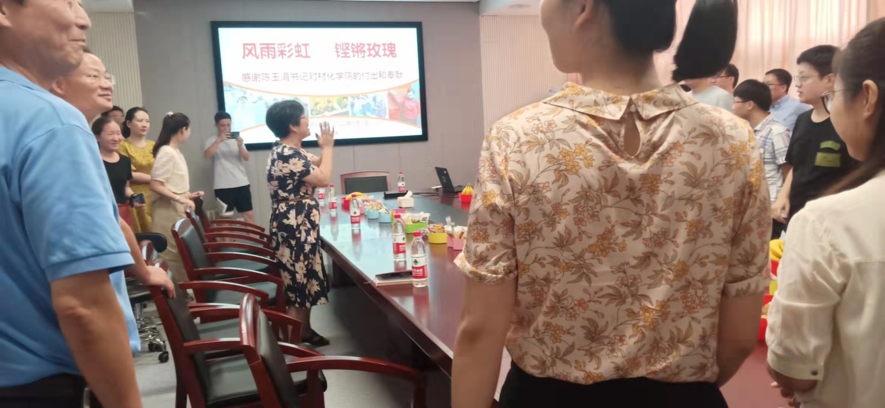 第二项议程是陈玉涓眼含热泪发表临别感言。接着工会主席舒杰老师发表了主题为“四劳”的致辞,感谢陈书记为材化91视频的付出。然后院领导、教职工纷纷发言,大家分别回顾了和陈书记交集的片段并表达了自己的祝福和感谢。现场气氛热烈,欢送会最后在集体合照、殷殷祝福和相拥作别中圆满结束。