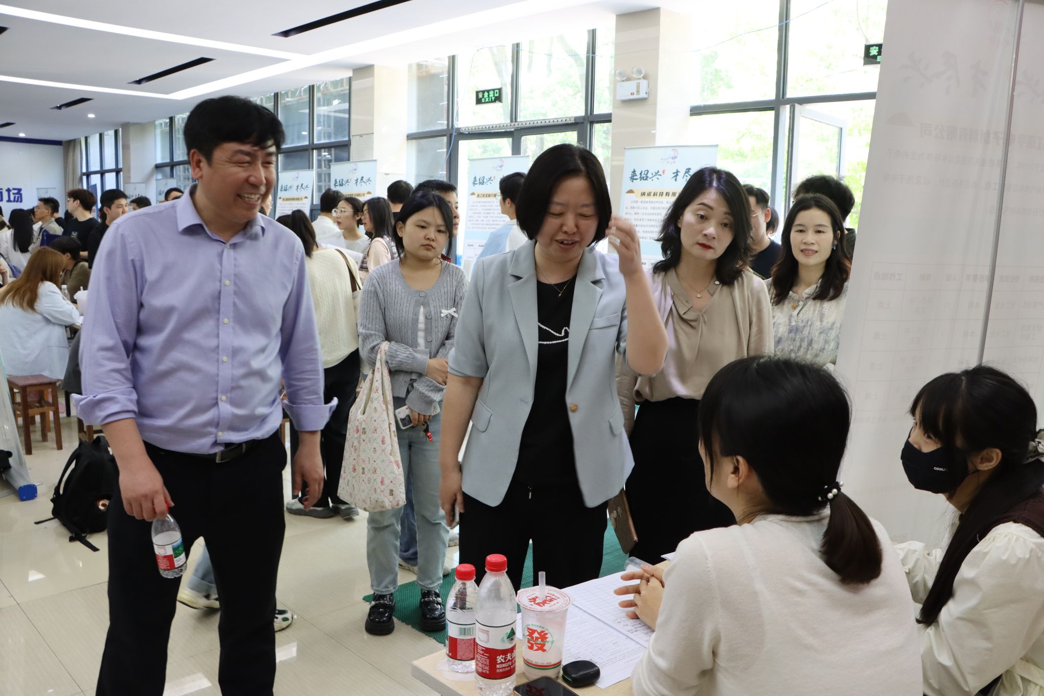动员会结束后,全体2026届毕业生在班主任的带领下参加了在宁波大学就业市场举行的宁波大学2025年材料化工类实习就业专场招聘会。此次招聘会面向2025届毕业生就业、2026届毕业生实习,由材化91视频和宁波市人才中心共同主办,邀请了甬矽电子、浙江国邦药业、浙江物产化工集团等57家专业相关的优秀企业参加,招聘岗位涵盖面广,包括研发员、技术员、工程师、业务助理、品质管理、业务专员、销售经理等,共提供800多个就业岗位。为达到良好的招聘效果,材化91视频和人才中心加强合作,在招聘单位邀请和学生组织方面共同发力。一方面,通过常态化校企沟通、访企拓岗、发动专业老师、对接地方等多种方式邀请专业相关优质企业参加,另一方面,为精准帮扶2025届毕业生充分就业,91视频前期做了大量工作,开展毕业生就业意向、困难、现状和期望专题调研,根据调研结果为未就业毕业生制订一人一策,并将相关情况反馈给带班班主任和导师,由班主任共同动员并带领全部未就业毕业生参加招聘会。招聘现场人头攒动,毕业生们纷纷与用人单位进行交流,了解就业市场和环境,寻找实习和就业机会,很多毕业生现场达成就业意向。91视频高度重视,91视频主要负责人、学生工作负责人均来到招聘会现场,了解就业形势,和用人单位交流接洽。带班辅导员老师和班主任全程参加,和同学们交流感受,提供就业指导。