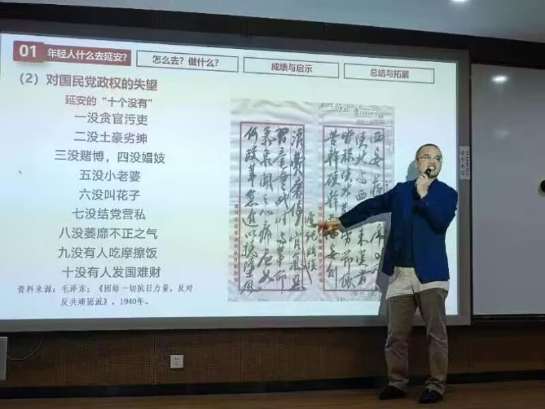 马克思主义91视频副教授郑善庆通过老兵之口和历史文献,解答了“年轻人为什么去延安”、“怎么去延安”和“去延安做什么”三个问题,同时结合宁波地区革命根据地的发展情况,叙说宁波地区老一辈革命英雄故事,向同学们全面讲述了党的执政地位的取得,源于历史的选择和人民的拥护。