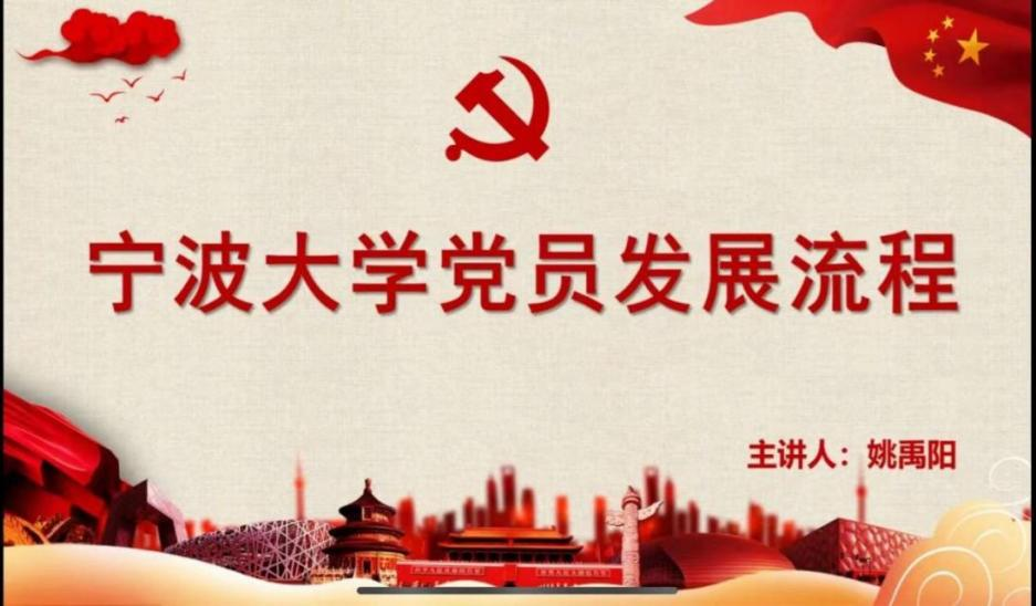 院党建辅导员姚禹阳给入党积极分子们分享了宁波大学党员发展流程,让大家对党员的一步步发展有了更深刻的认识,同时也意识到一名优秀党员的培养是一个漫长而又充满考验的过程。